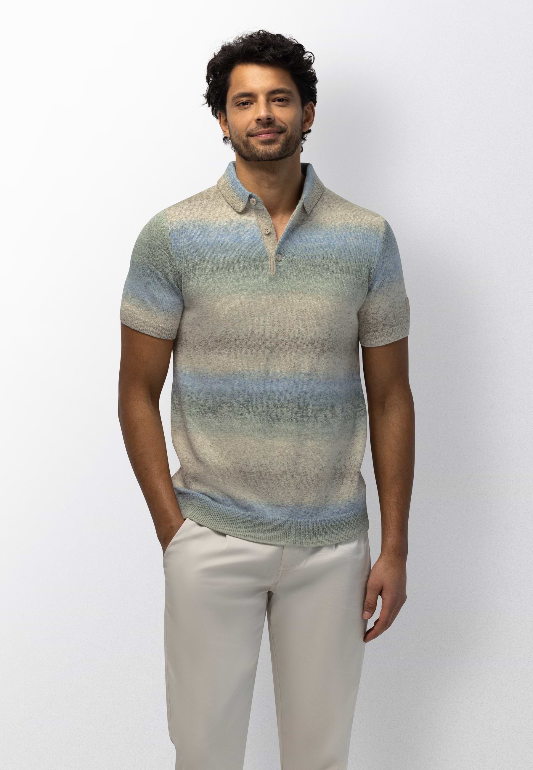 Regular-Fit-Poloshirt aus feinem Strick mit horizontalem Streifenmuster. Das Space-Dye-Garn wird vor dem Stricken mehrfach eingefärbt und erzeugt dezente Farbverläufe sowie einen lebendigen Melange-Effekt. Die Mischung aus Baumwolle, Acryl und Polyamid fühlt sich weich und leicht an, bleibt formstabil und ist mit kurzen Ärmeln sowie einem Gummibadge am Ärmel ausgestattet.