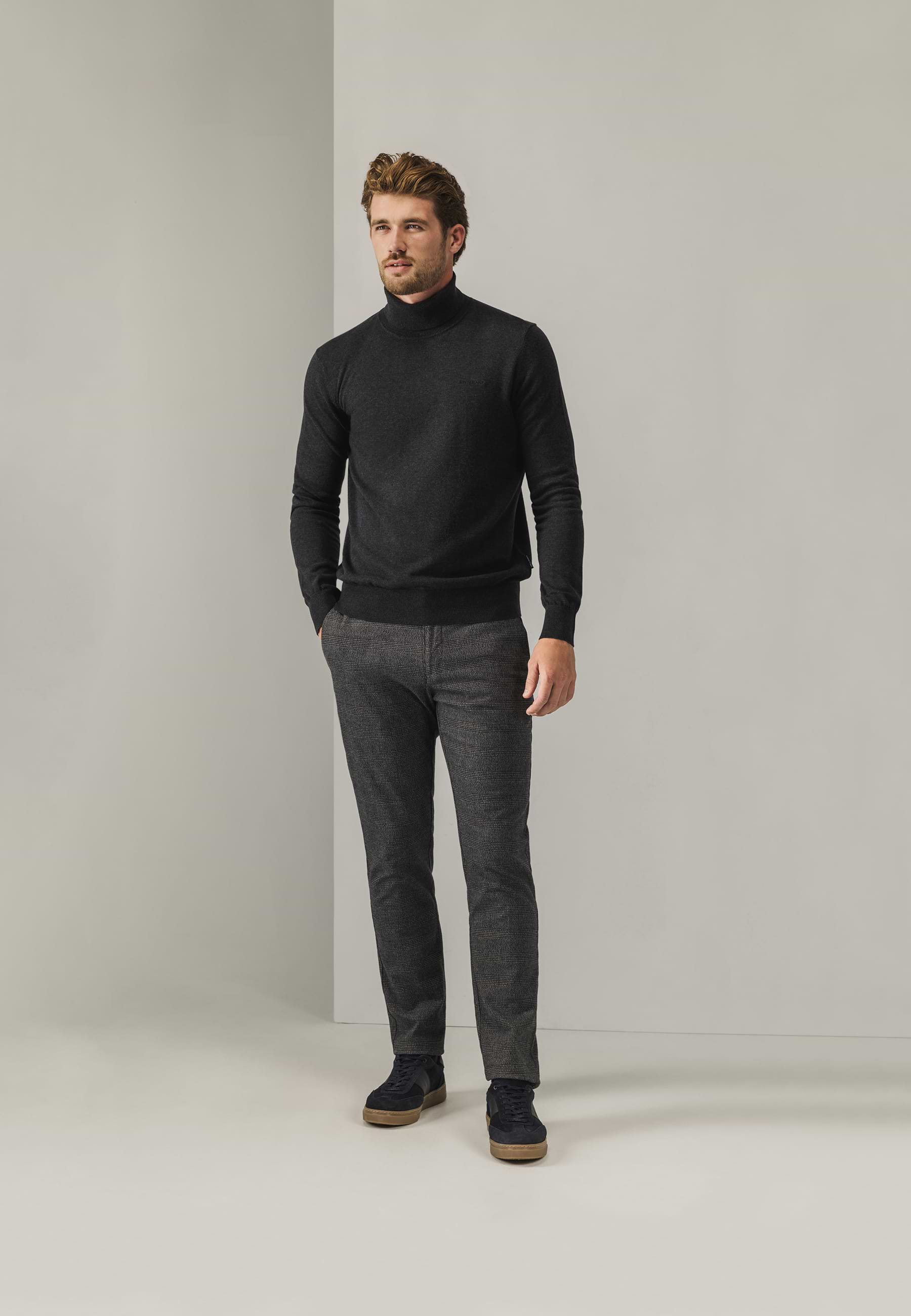 Ce chino NAVIGATOR en tissu extensible à la coupe classique est fait de coton et d'élasthanne et présente un motif à carreaux sophistiqué. Le chino a un aspect classique grâce à la ceinture à passants, au bouton et à la fermeture éclair, tandis que la combinaison de poches fendues à l'avant et de poches passepoilées à l'arrière assure une finition soignée. Le tissu extensible offre une grande liberté de mouvement sans compromettre le style.