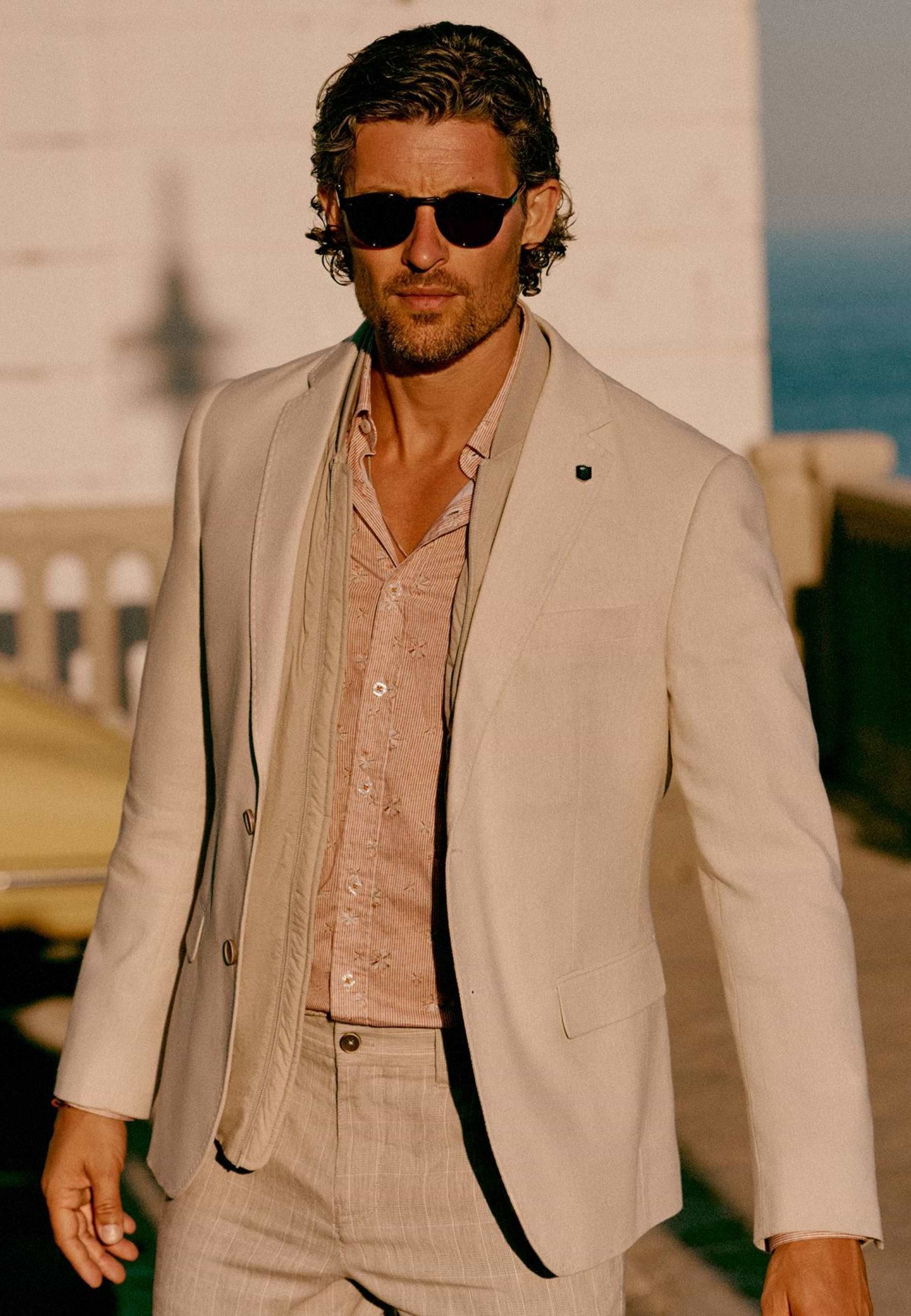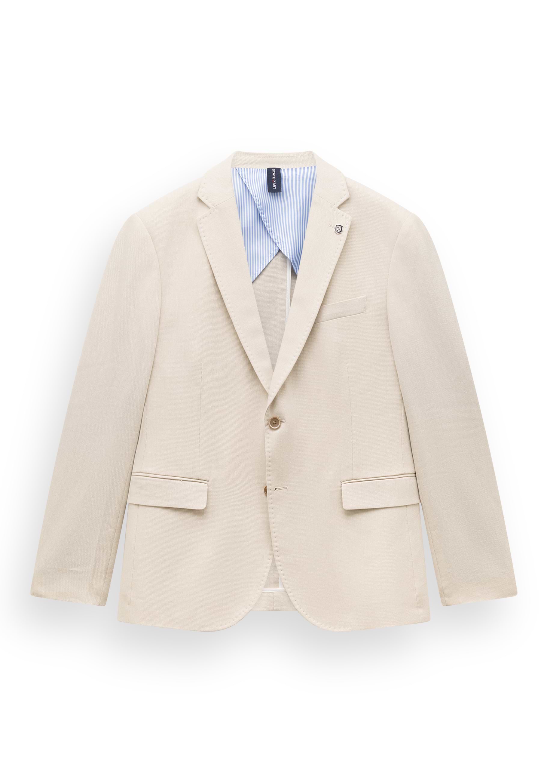 Regular fit blazer van katoen- en linnenmix met een luchtig draaggevoel en een natuurlijke uitstraling. Voorzien van een klassieke reverskraag en een halfgevoerde afwerking voor extra comfort. Afgewerkt met een tweeknoopssluiting, twee klepzakken, een borstzak en twee binnenzakken, waarvan één met knoop. De twee loopsplitten achter en mouwuiteinden met vier knopen zorgen voor een verzorgde, tijdloze look.