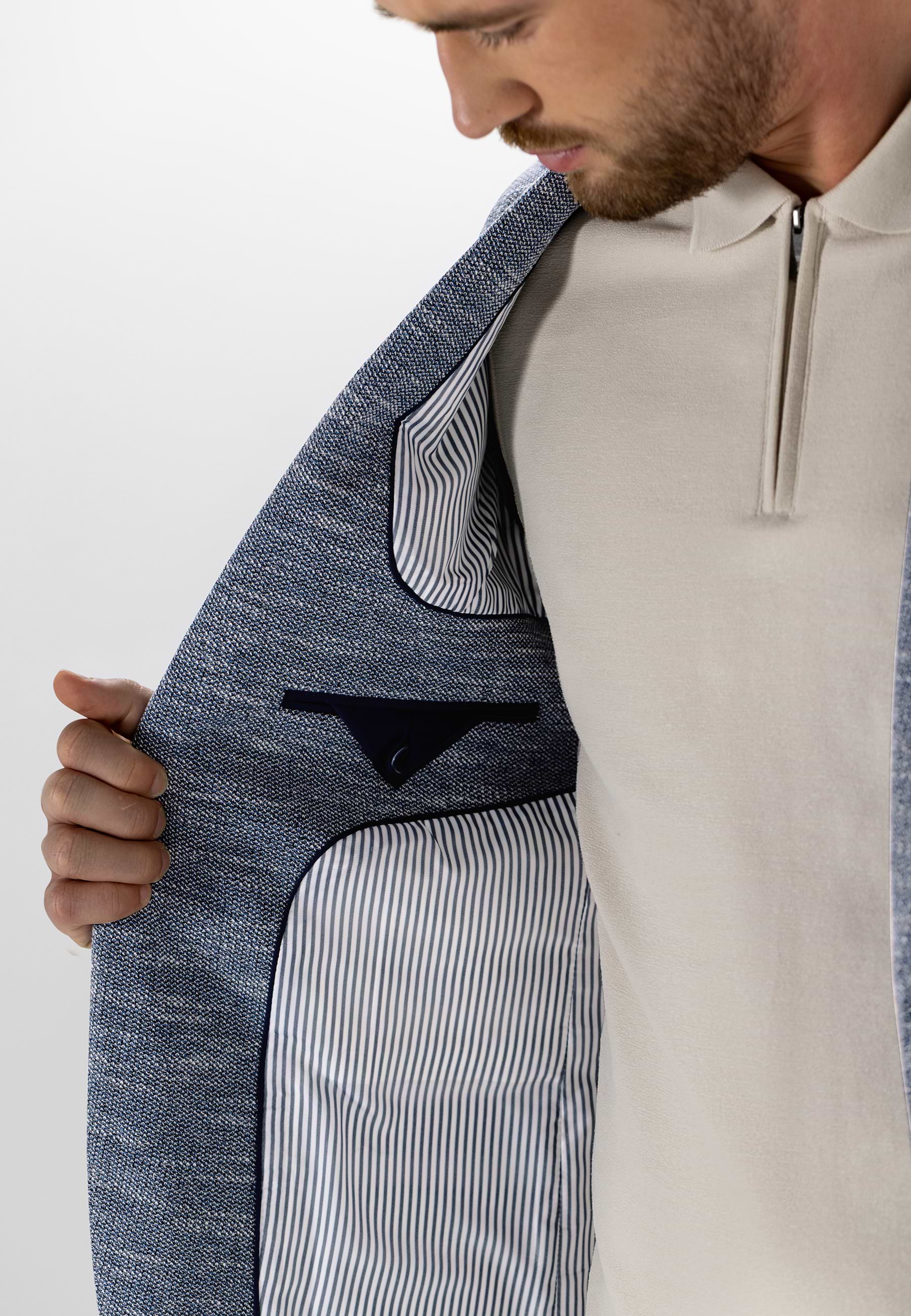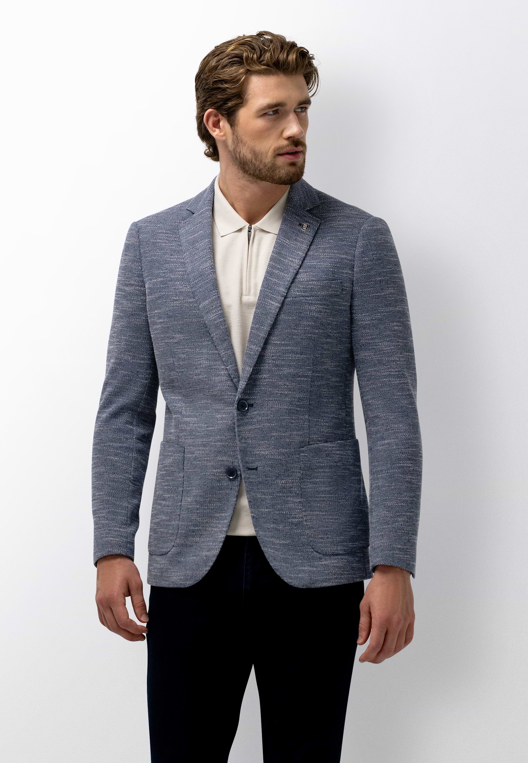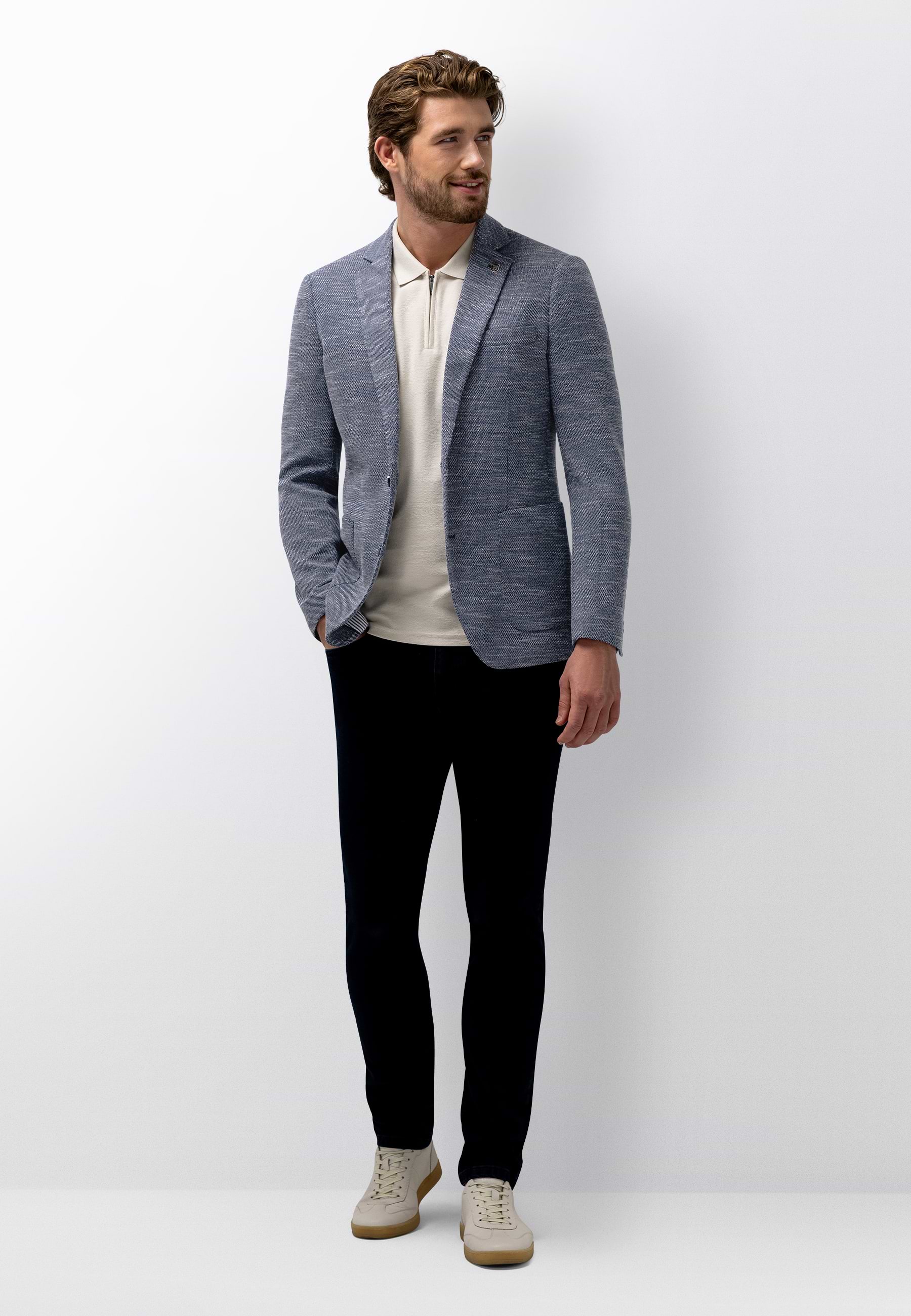 Blazer in een regular fit met een klassieke reverskraag met pin en een subtiel gemêleerd dessin. Deze halfgevoerde blazer sluit met twee knopen en is voorzien van twee opgestikte zakken, een borstzak en twee binnenzakken, waarvan één met knoop. De mouwuiteinden met vier knopen en de dubbele loopsplit achter zorgen voor extra bewegingsvrijheid. Gemaakt van een mix van polyester en katoen die comfortabel aanvoelt en bijdraagt aan een vormvaste, verzorgde uitstraling.