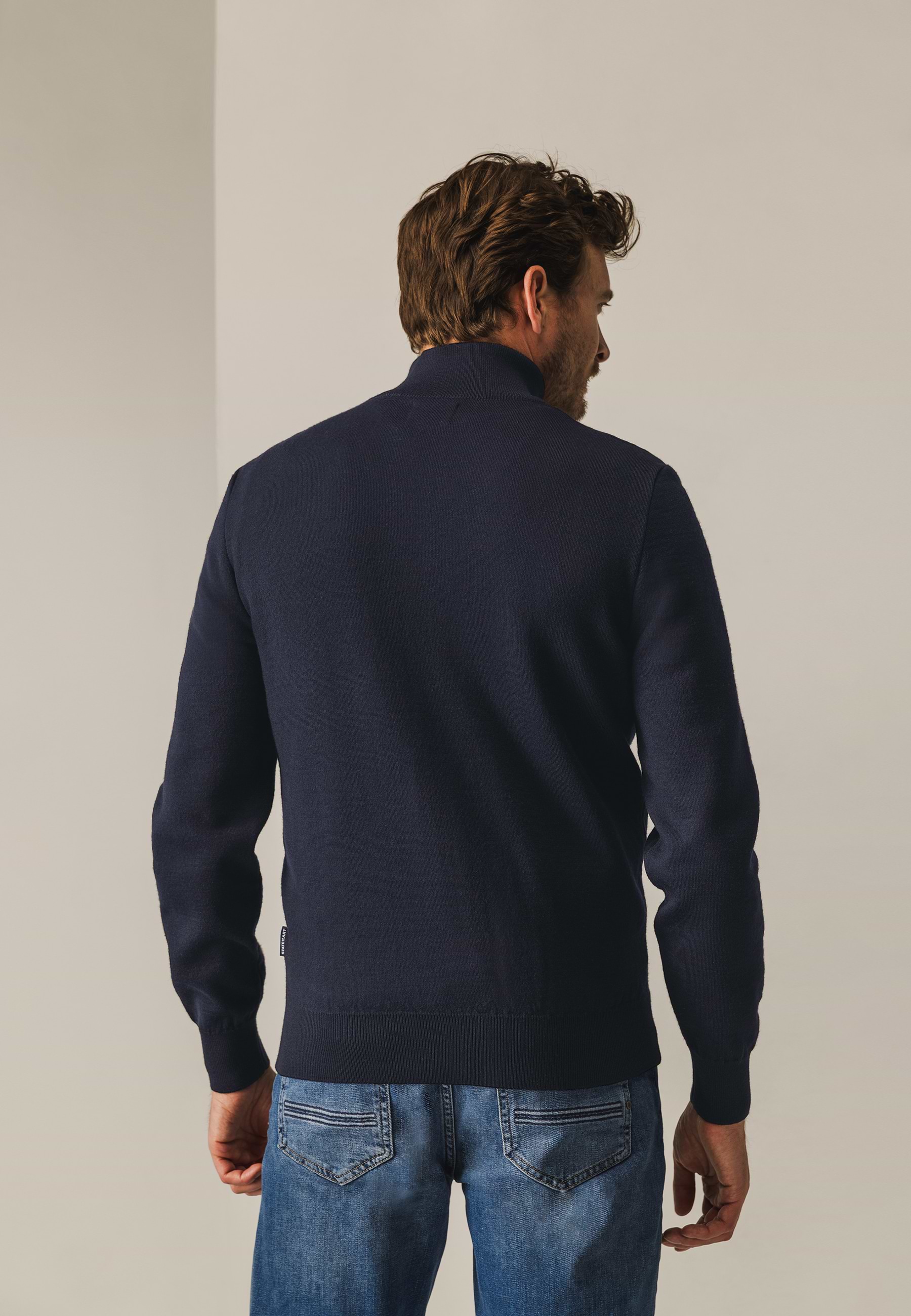 Dit vest met hoge kraag is uitgevoerd in regular fit en voorzien van een praktische ritssluiting, twee steekzakken en een rubberen badge op de mouw. De dubbelgebreide-constructie combineert een buitenzijde van katoen, wol en acryl met een binnenzijde van katoen, wat zorgt voor stevigheid, warmte en een zachte feel aan de binnenkant.
