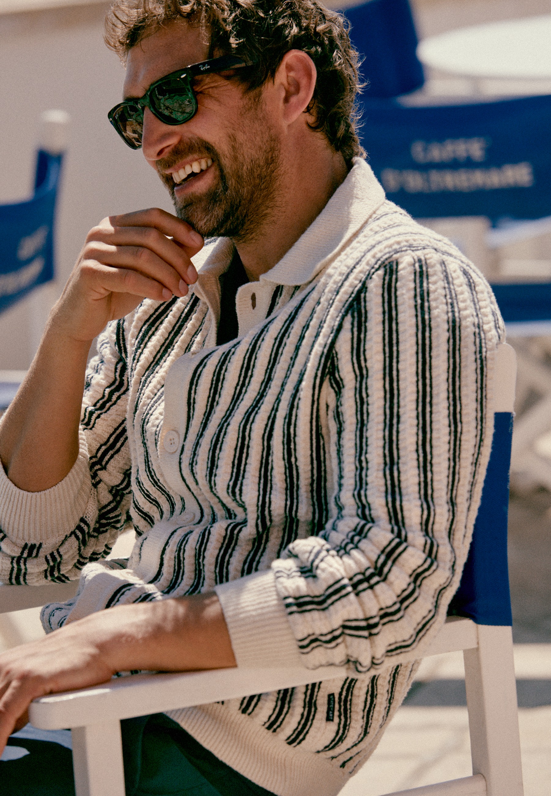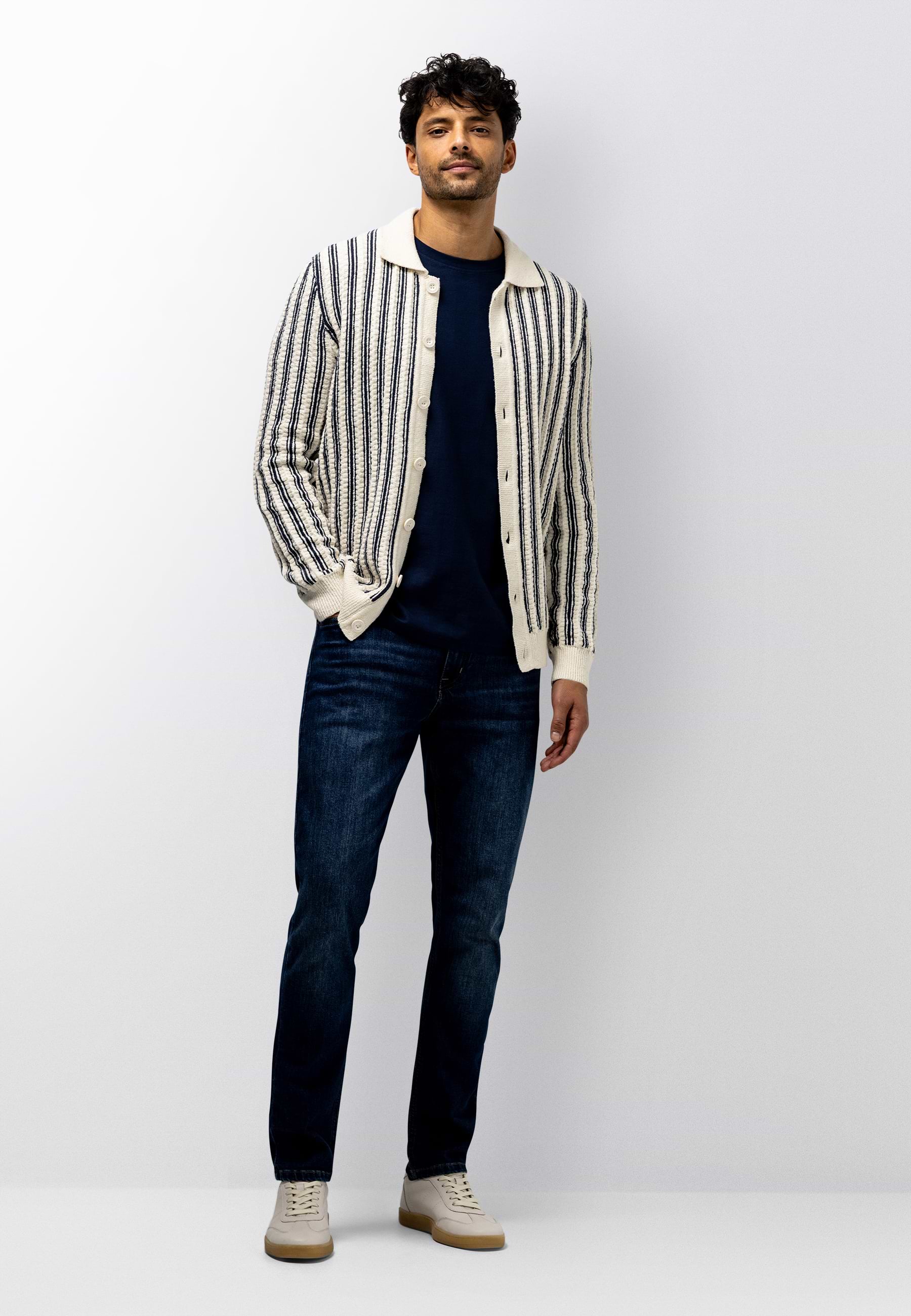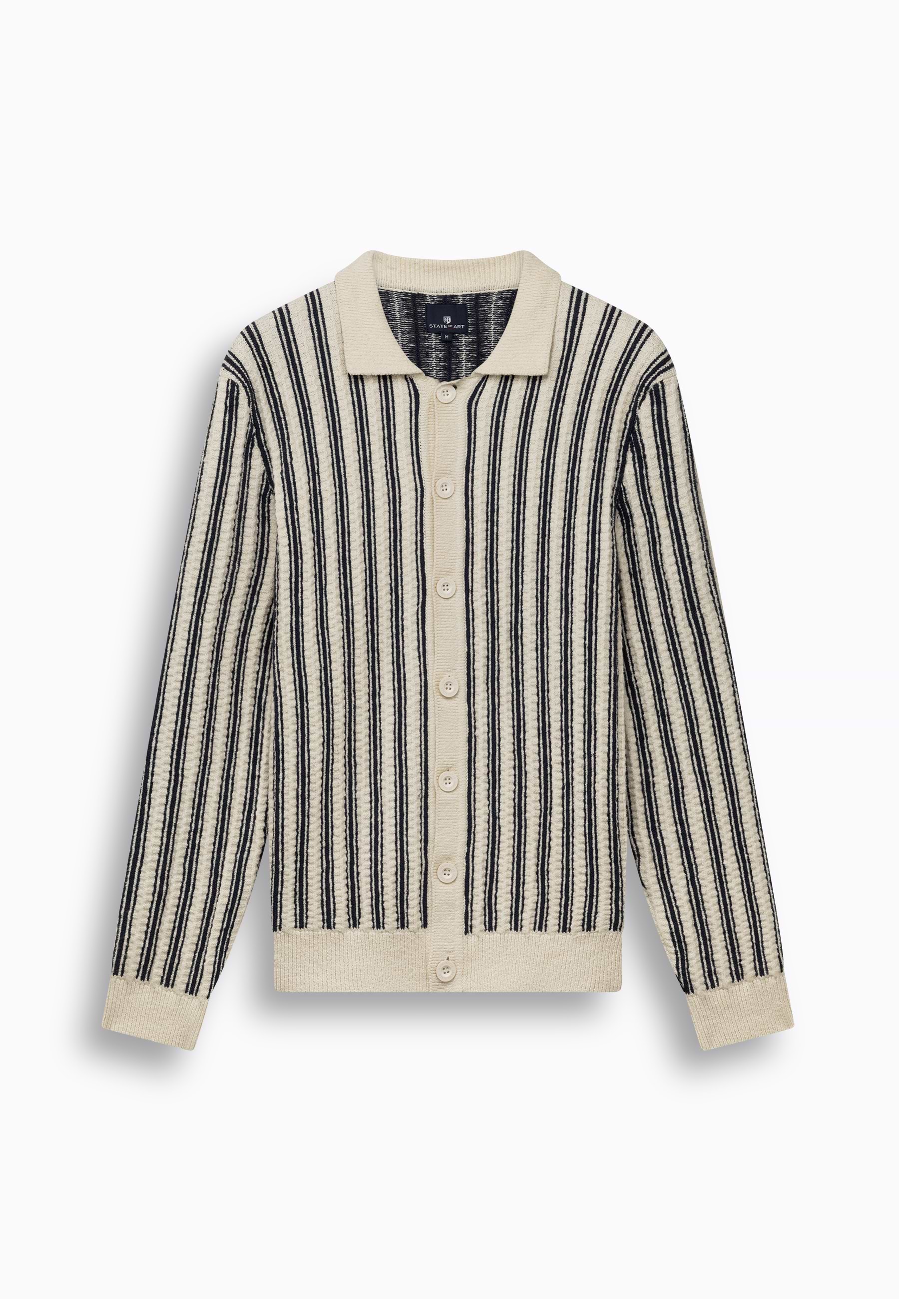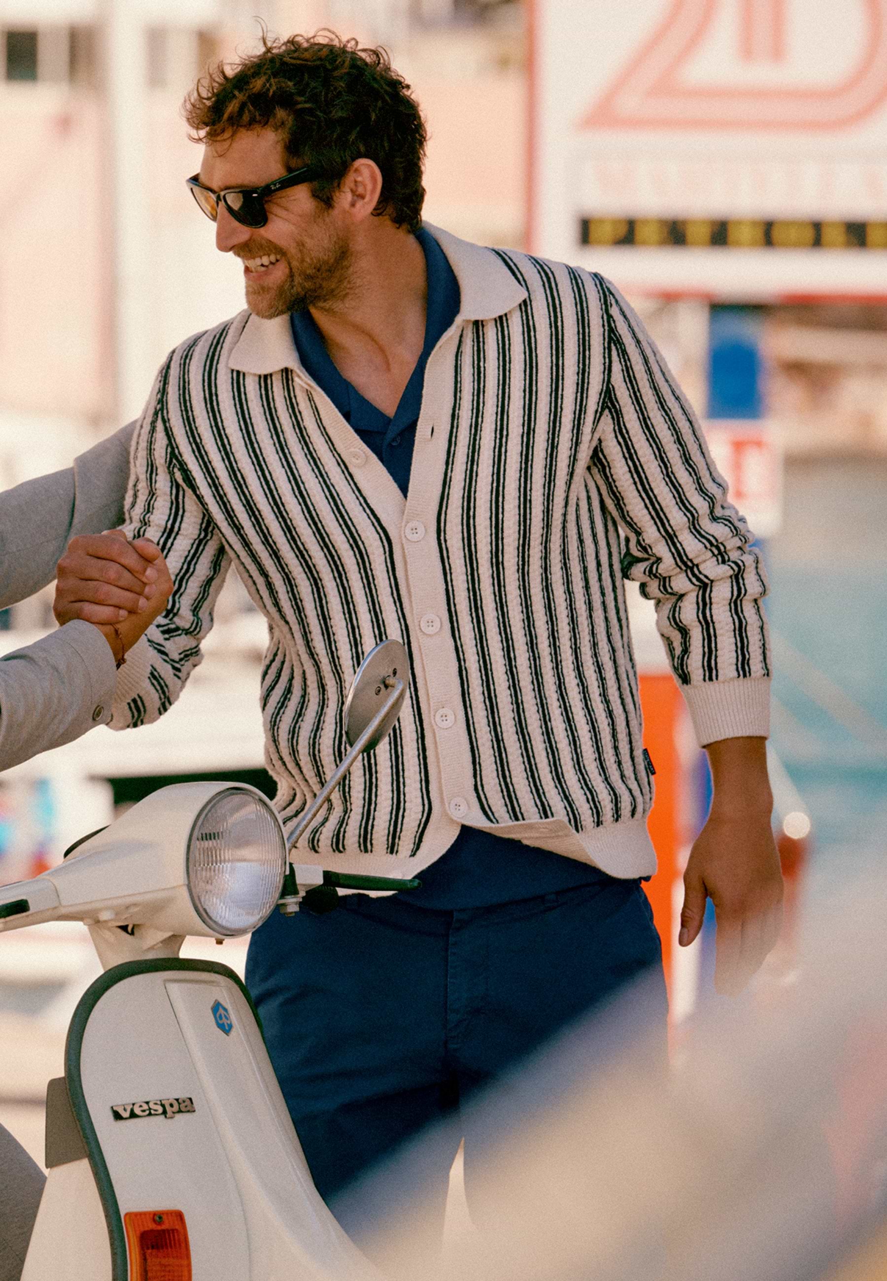 Polovest met een verticaal gestreept dessin en een comfortabele regular fit. Uitgevoerd met een structuurpatroon, knoopsluiting en gebreid van bouclégaren voor extra textuur. De combinatie van katoen en polyamide biedt een zachte, ademende basis met extra stevigheid en vormbehoud. Dit resulteert in een comfortabel vest met een verzorgde en moderne uitstraling.
