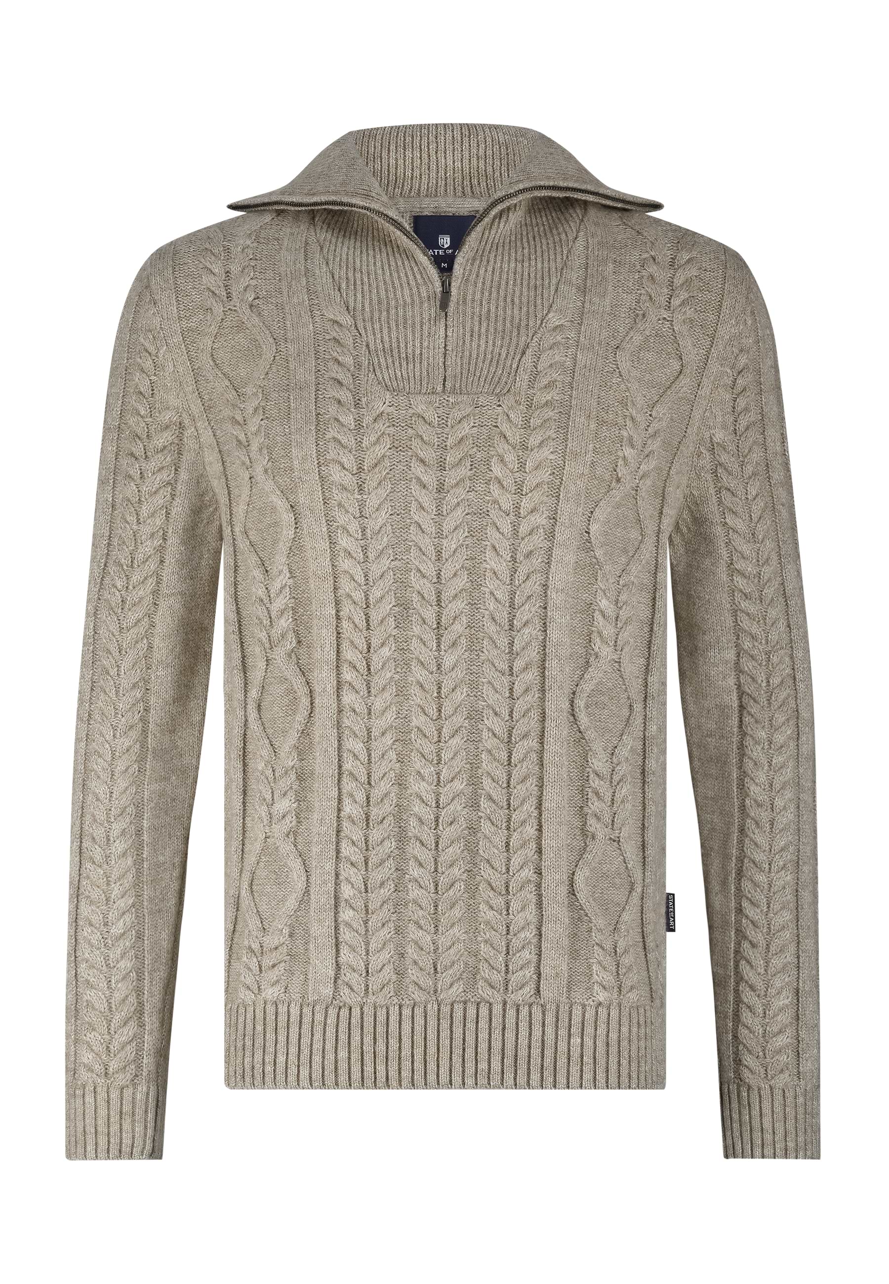 Deze regular fit schipperstrui is kabelgebreid en voorzien van een halve rits. De gemêleerde uitstraling geeft het ontwerp een stoer en speels accent. Gemaakt van CIPRO-garen, een mix van acryl, katoen en polyester, biedt deze trui een zachte grip, goede elasticiteit en een sterke vezelstructuur voor langdurig draagcomfort.