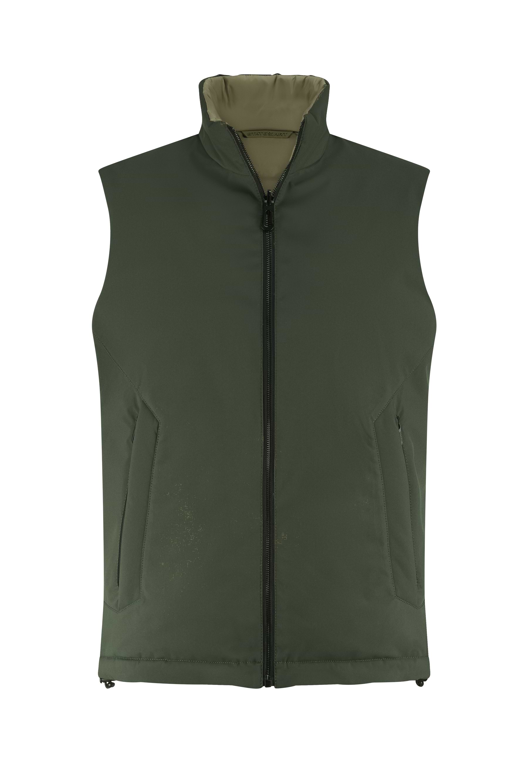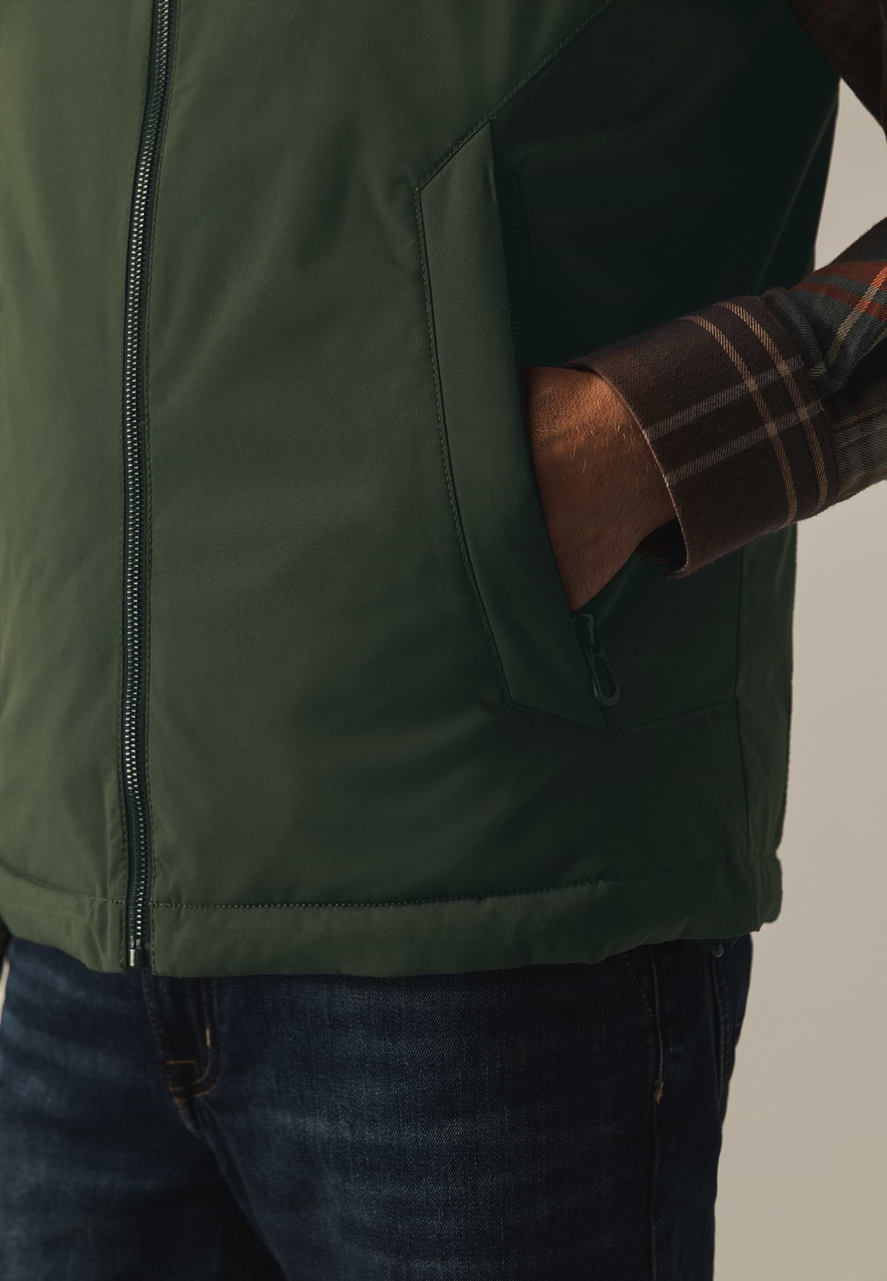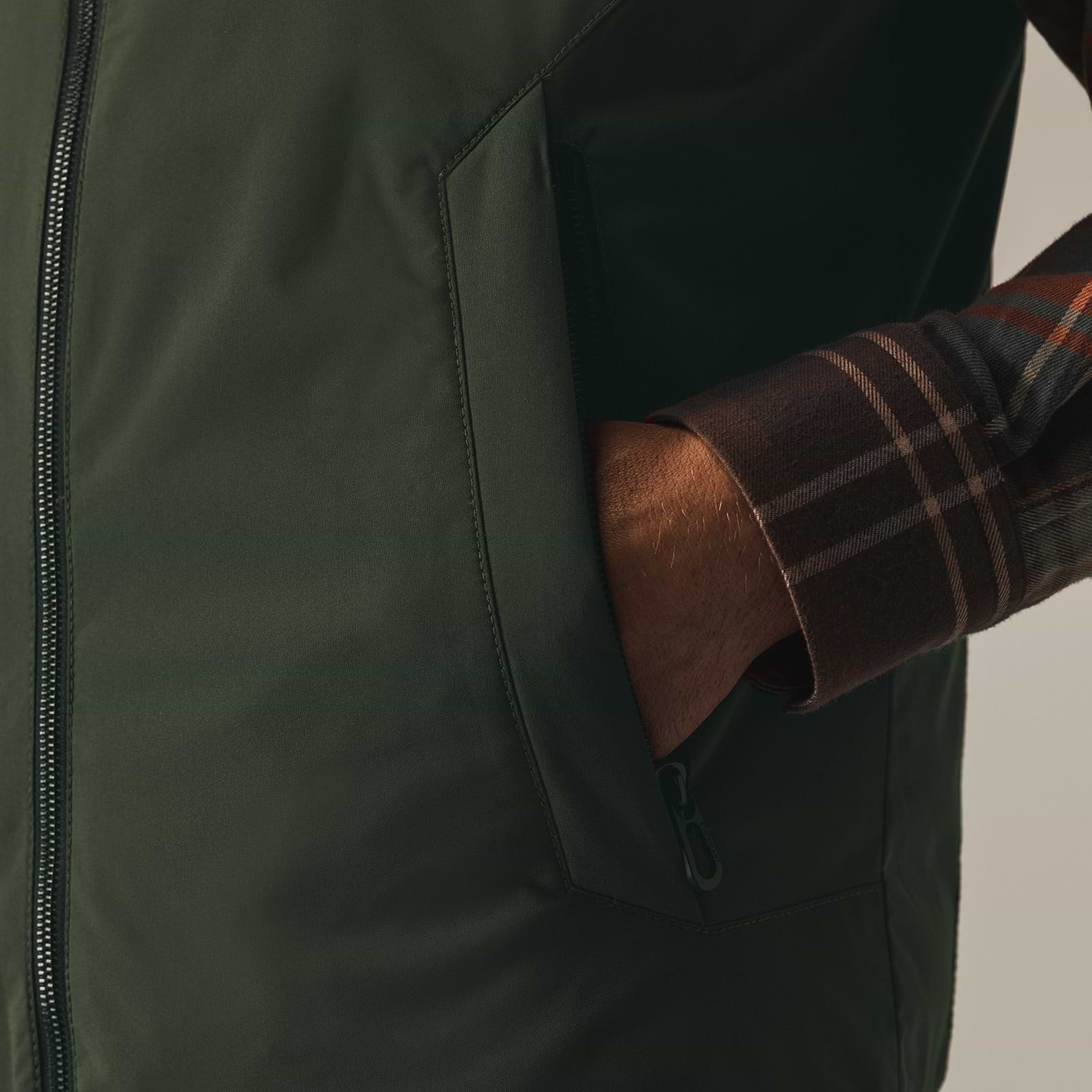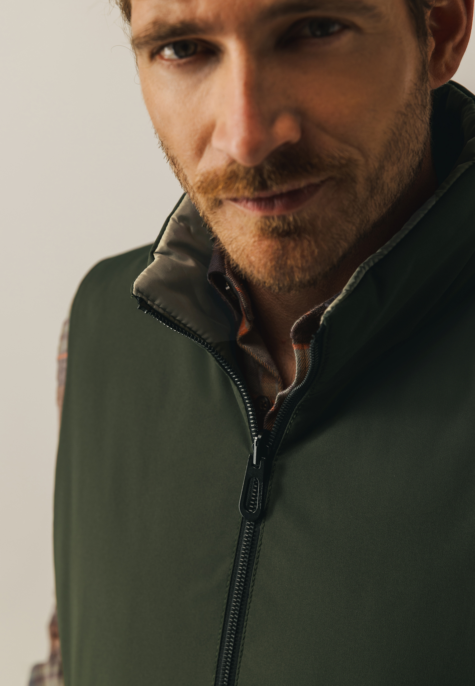 Deze regular fit bodywarmer is omkeerbaar en laat je kiezen tussen een gladde of gewatteerde zijde, afhankelijk van je stijl. De hoge kraag en ritssluiting zorgen voor comfort, terwijl twee steekzakken met rits en twee binnenzakken ruimte bieden voor essentials. Koordstoppers in de zoom maken de pasvorm verstelbaar en het lichte, stevige polyester draagt prettig.