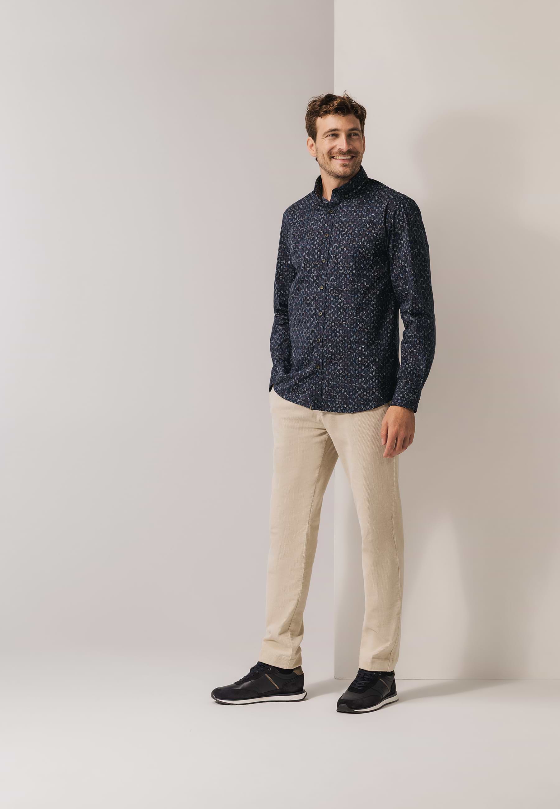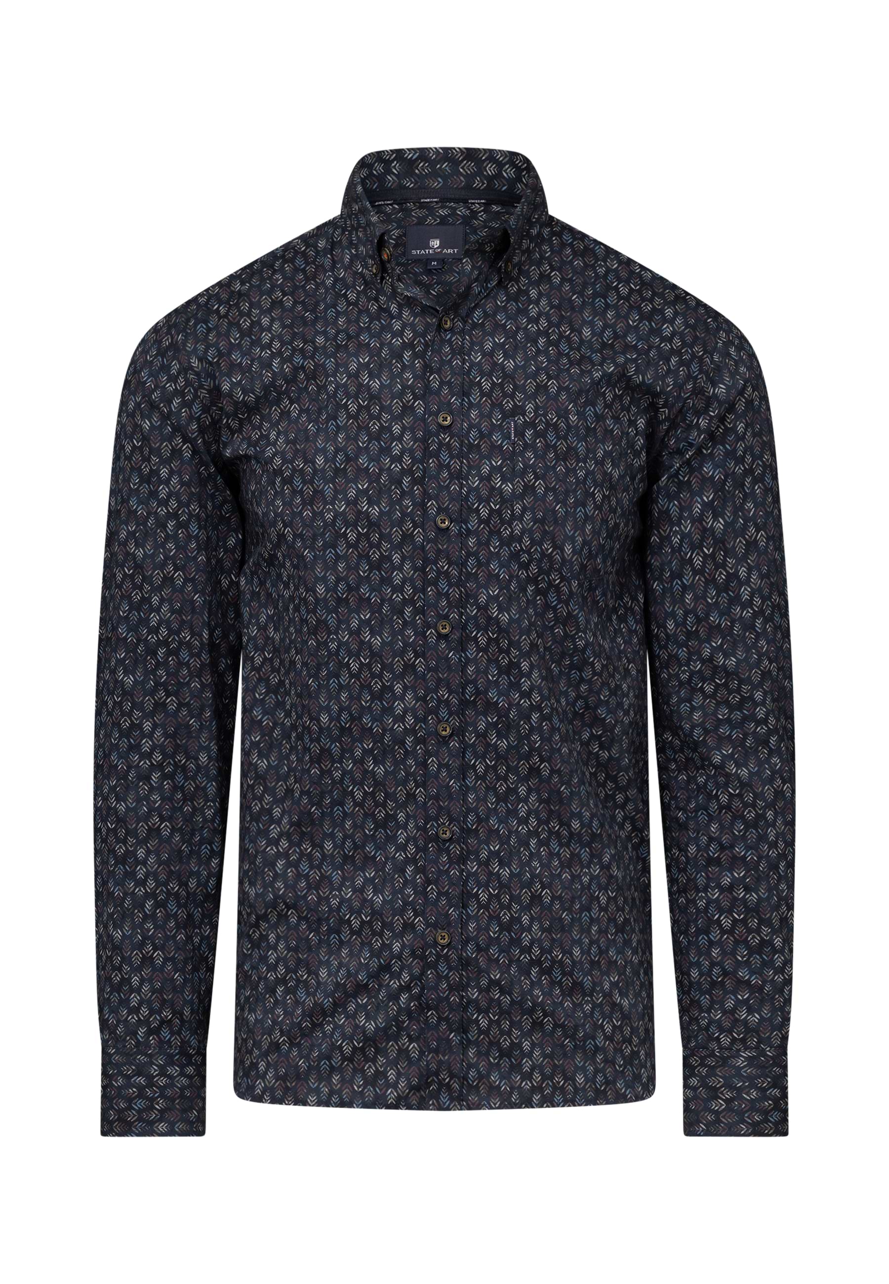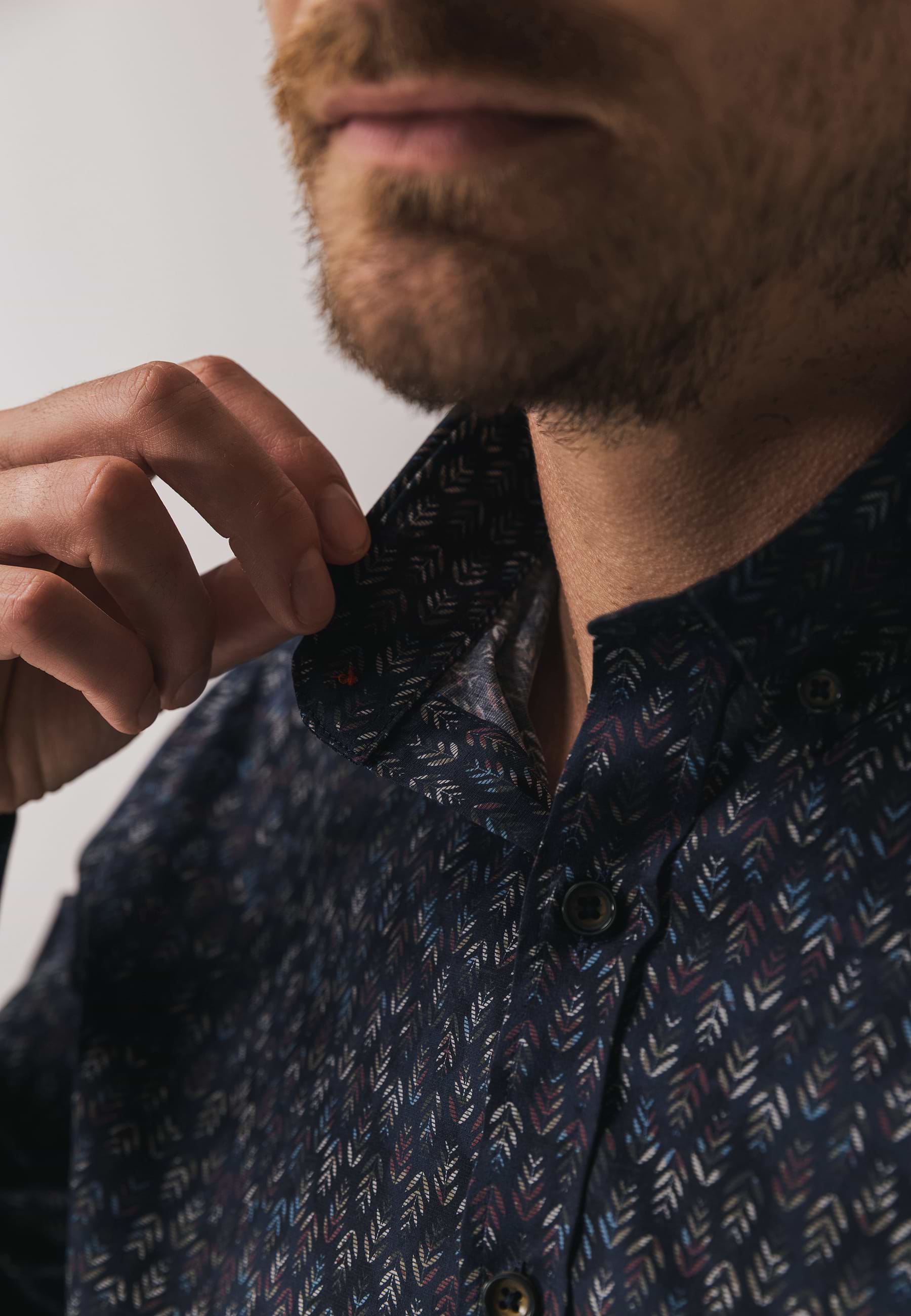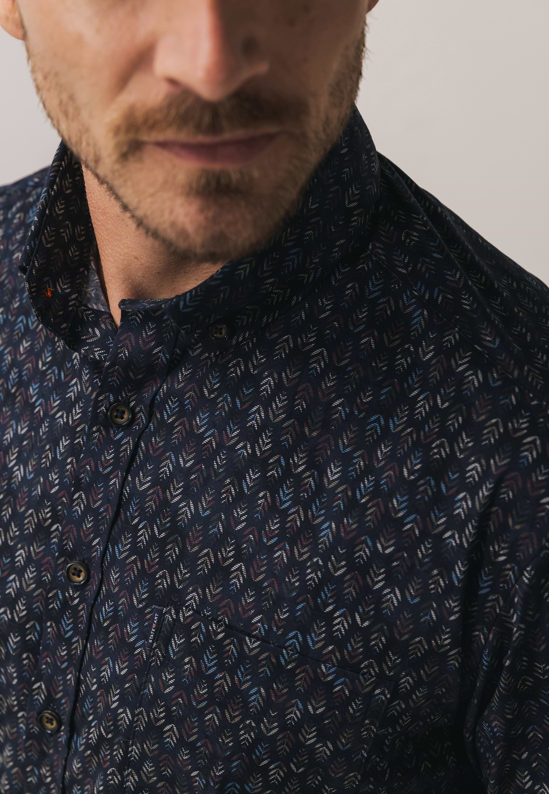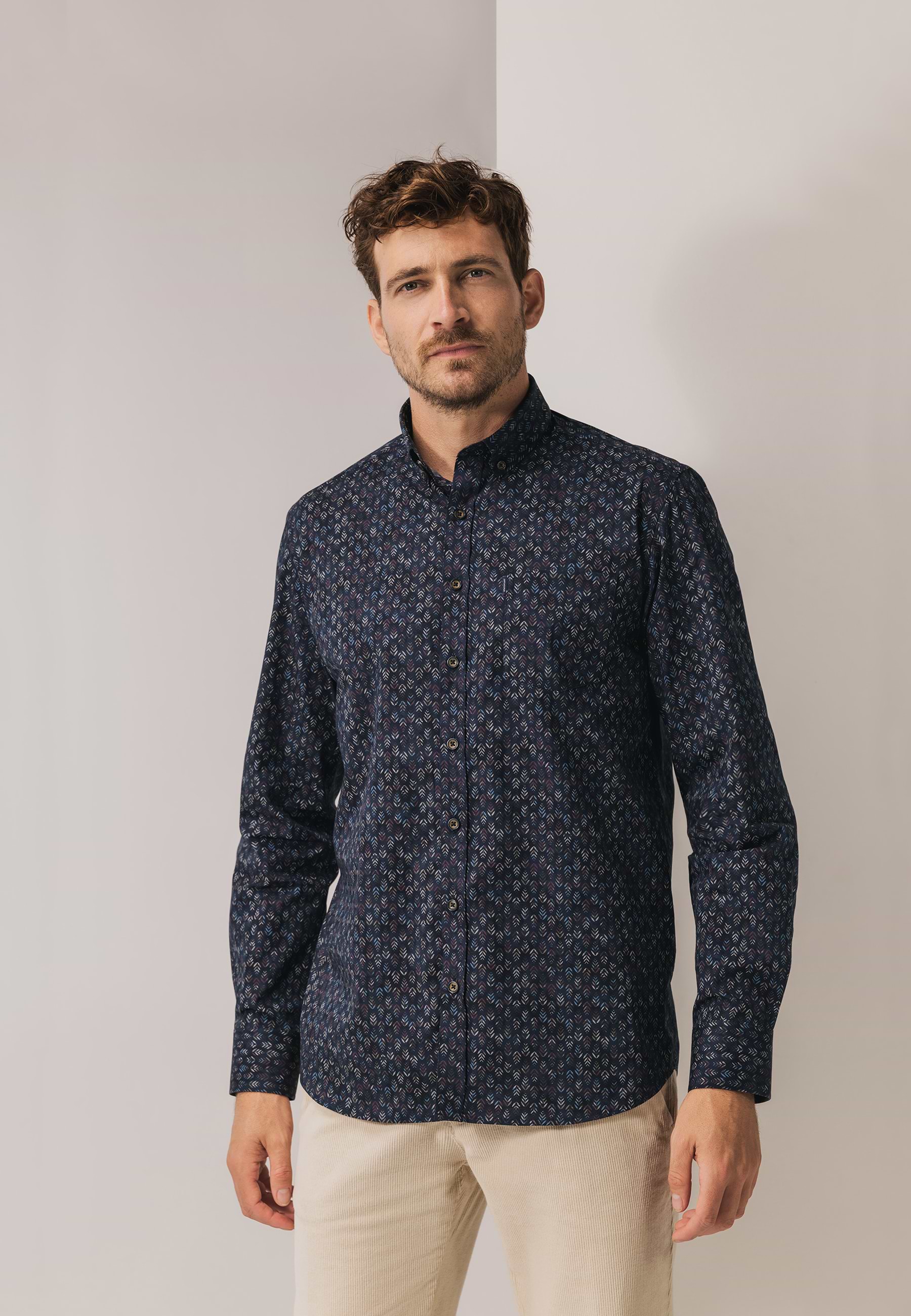 Dit regular fit overhemd is uitgevoerd in poplinstof van katoen met een vleugje stretch voor extra comfort. Het all-over bladmotief geeft het ontwerp een natuurlijke en verfijnde uitstraling, terwijl de button-down kraag en borstzak zorgen voor klassieke accenten. Dankzij de soepele, licht rekbare stof is dit overhemd prettig om te dragen en geschikt voor zowel casual als nette gelegenheden.