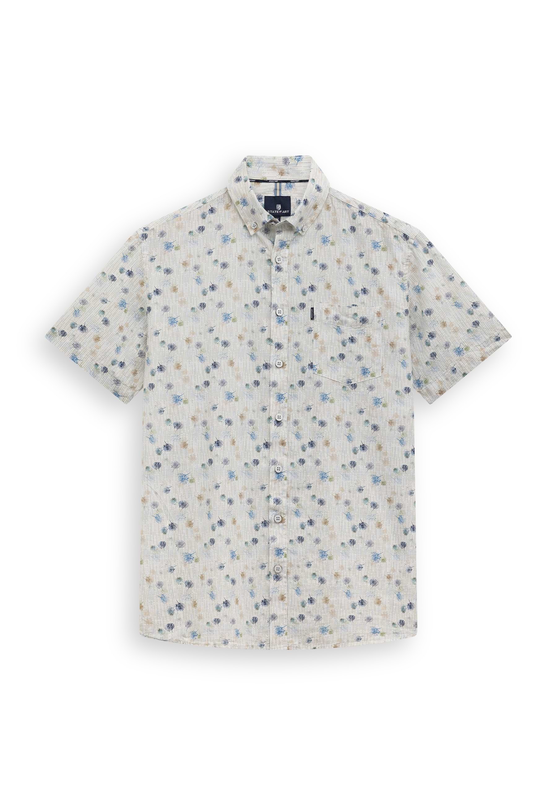 Dit overhemd met korte mouwen is gemaakt van katoen, waardoor het comfortabel draagt en licht aanvoelt. De luchtige slubstructuur en verfijnde botanische print geven het een verzorgde uitstraling, terwijl de regular fit zorgt voor een ontspannen pasvorm. De button-downkraag en borstzak voegen subtiele, functionele details toe, met als resultaat dat het overhemd moeiteloos past binnen een verzorgde, informele stijl.
