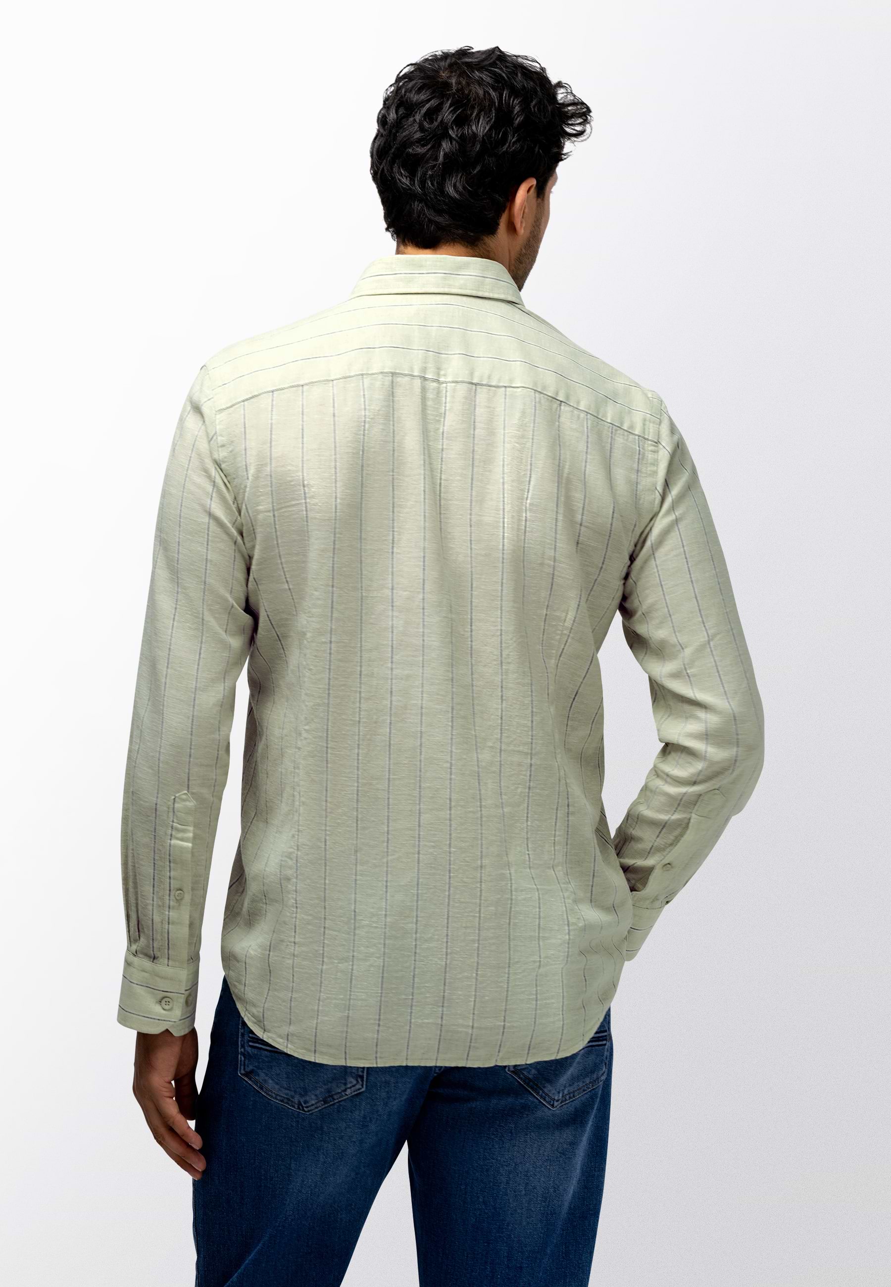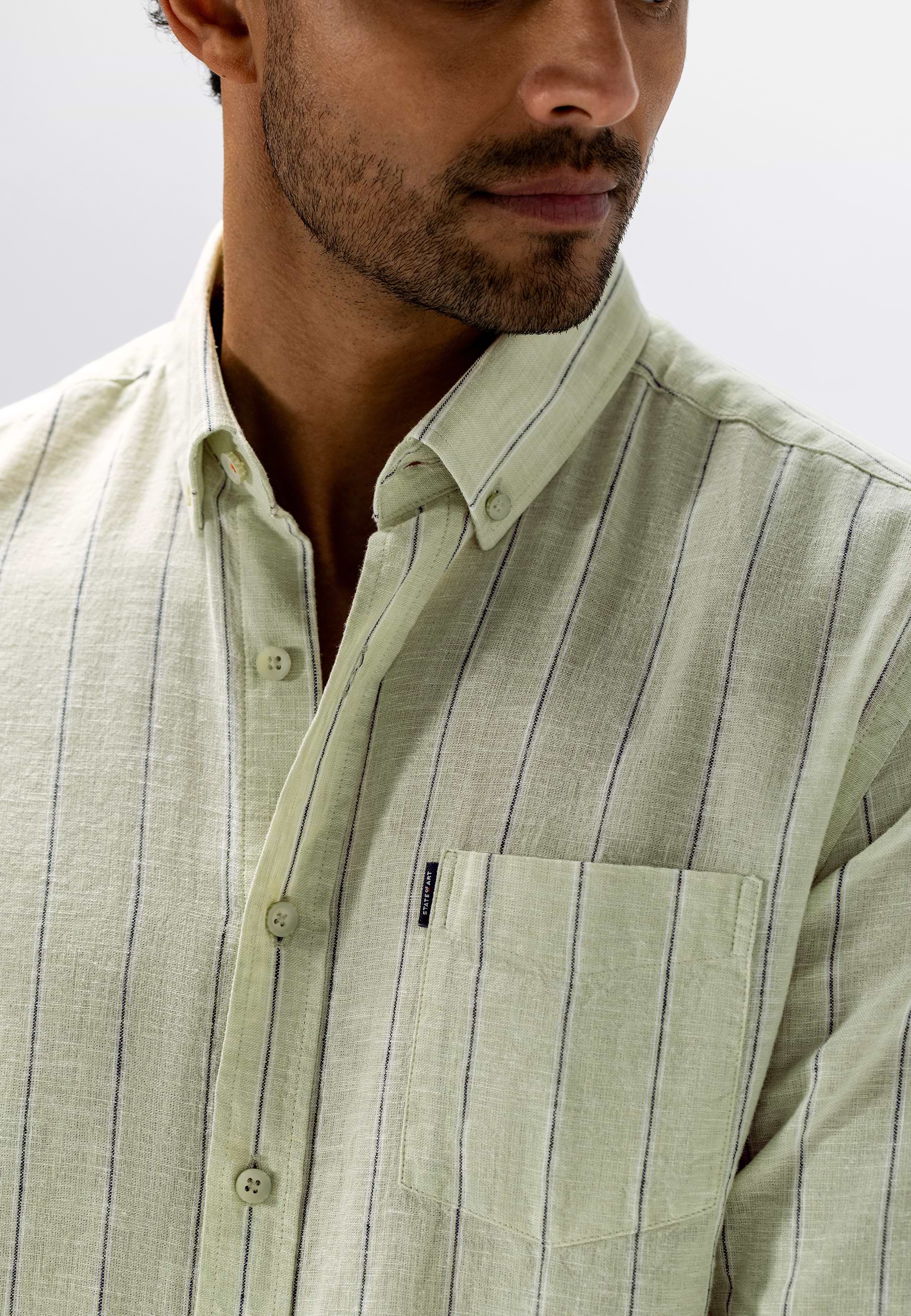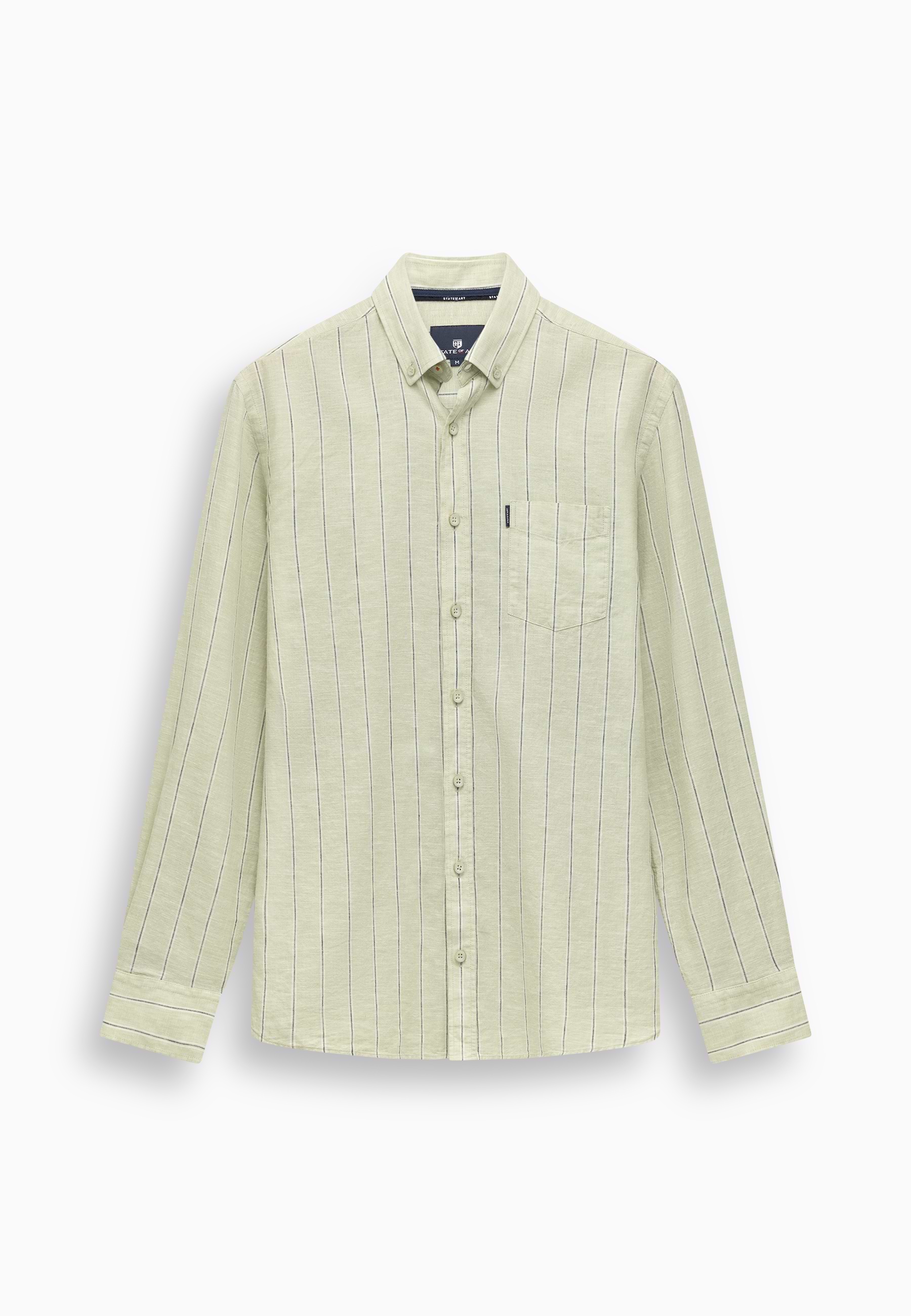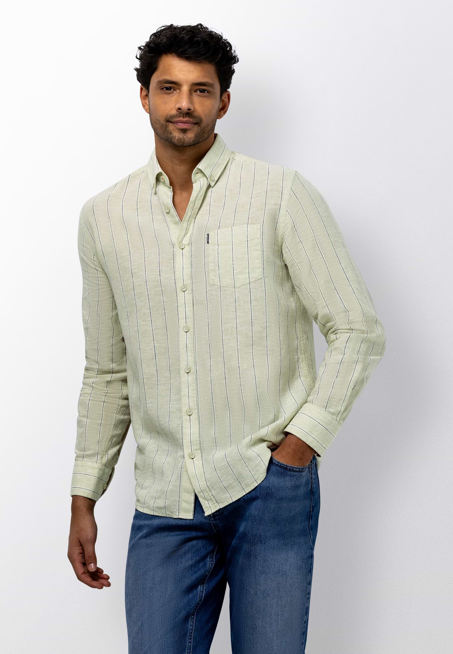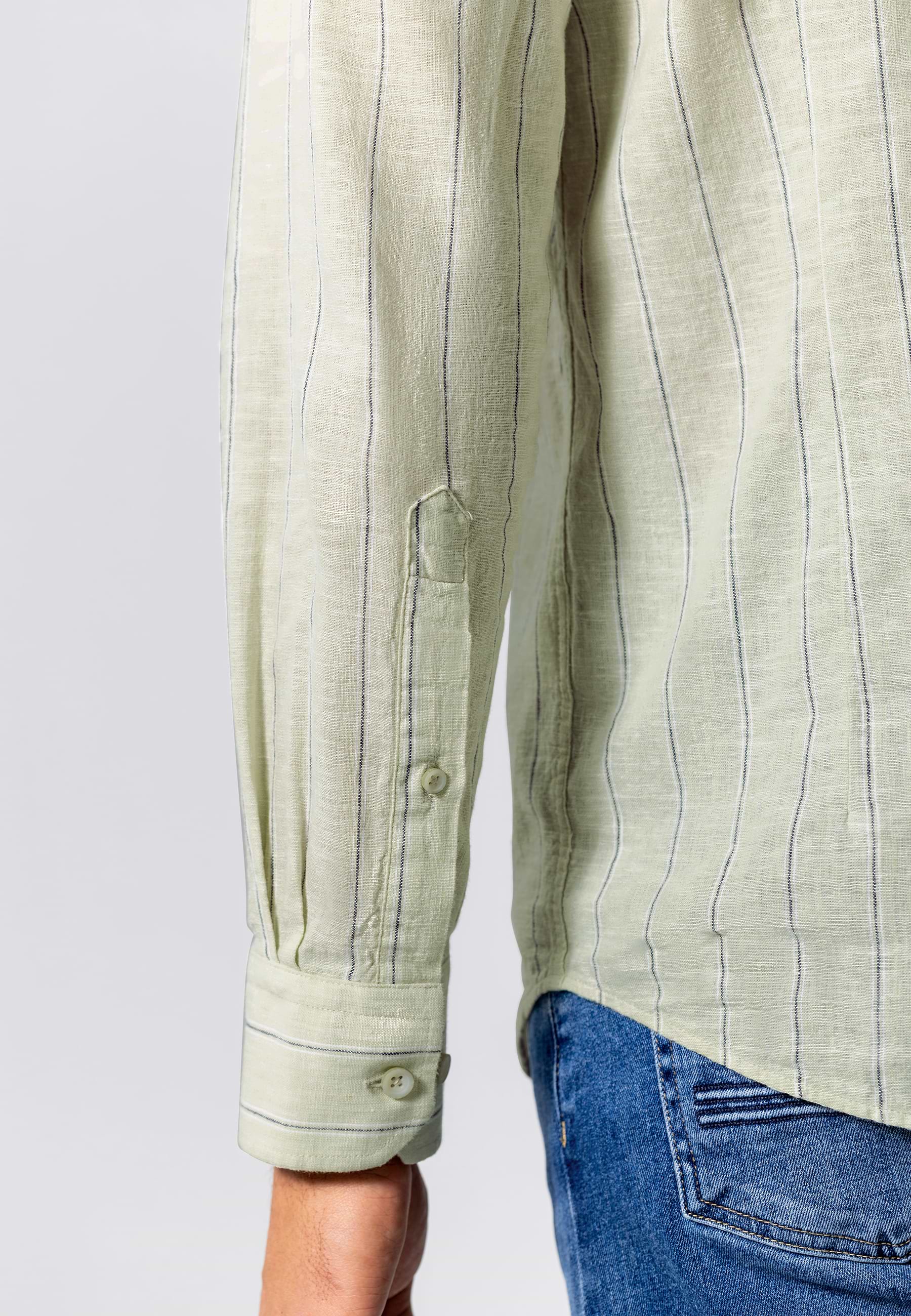 Regular fit overhemd met een gestreept dessin. Gemaakt van yarn-dyed stof, waarbij de garens vooraf worden geverfd. Dit zorgt voor een diepe, gelijkmatige kleur en een verfijnde uitstraling die mooi blijft. Voorzien van een button-downkraag en één borstzak. De mix van linnen en katoen voelt luchtig aan en biedt prettig draagcomfort voor dagelijks gebruik.