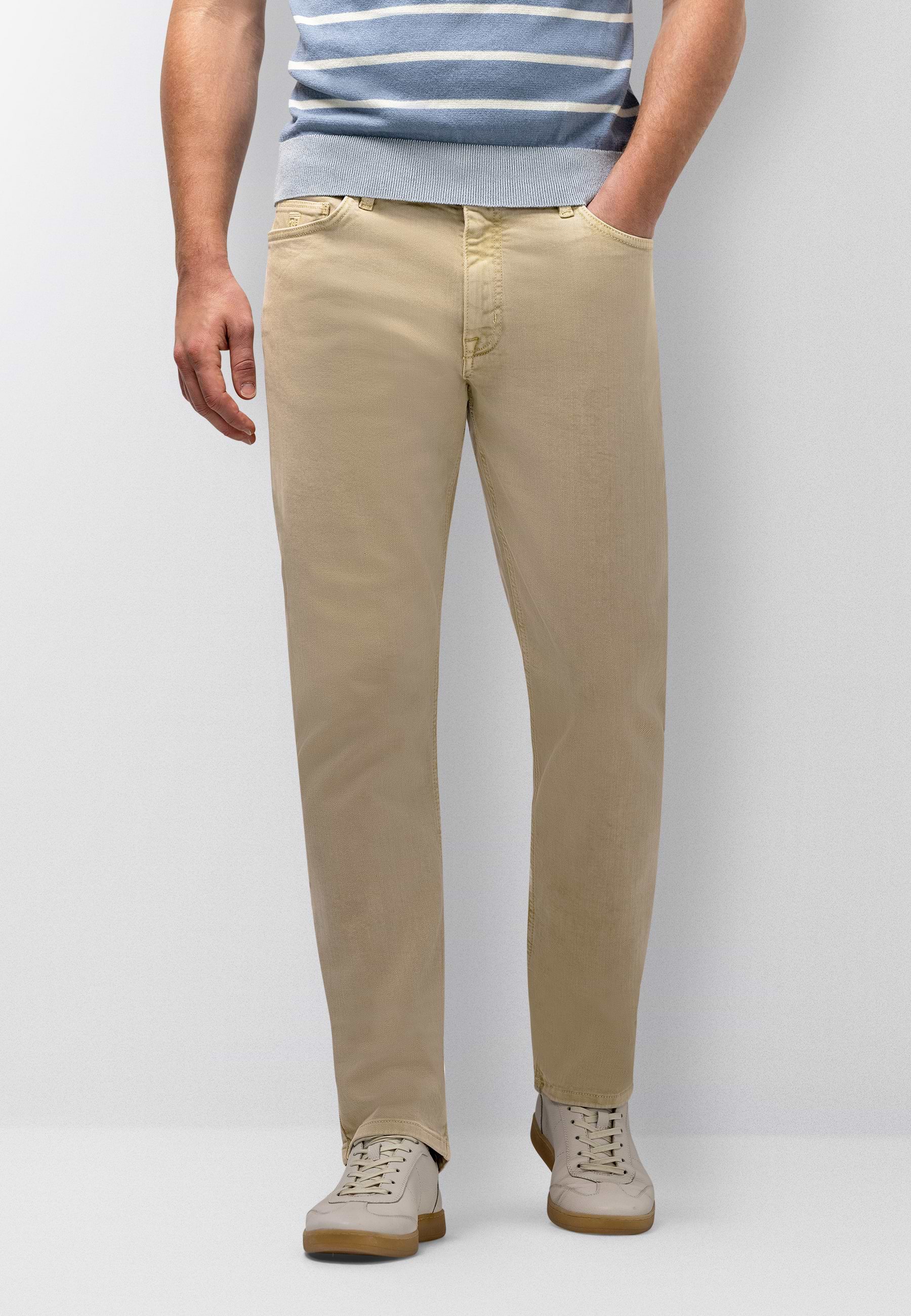 Deze 5-pocket heeft een regular fit en is uitgevoerd in een blend van katoen en elastaan, waardoor het denim licht stretcht en comfortabel meebeweegt. Het gekleurde denim geeft de broek een moderne, frisse uitstraling. Dankzij de band met riemlussen en de knoop- en ritssluiting blijft het ontwerp klassiek, terwijl het herkenbare 5-pocket-model zorgt voor praktische opbergruimte.