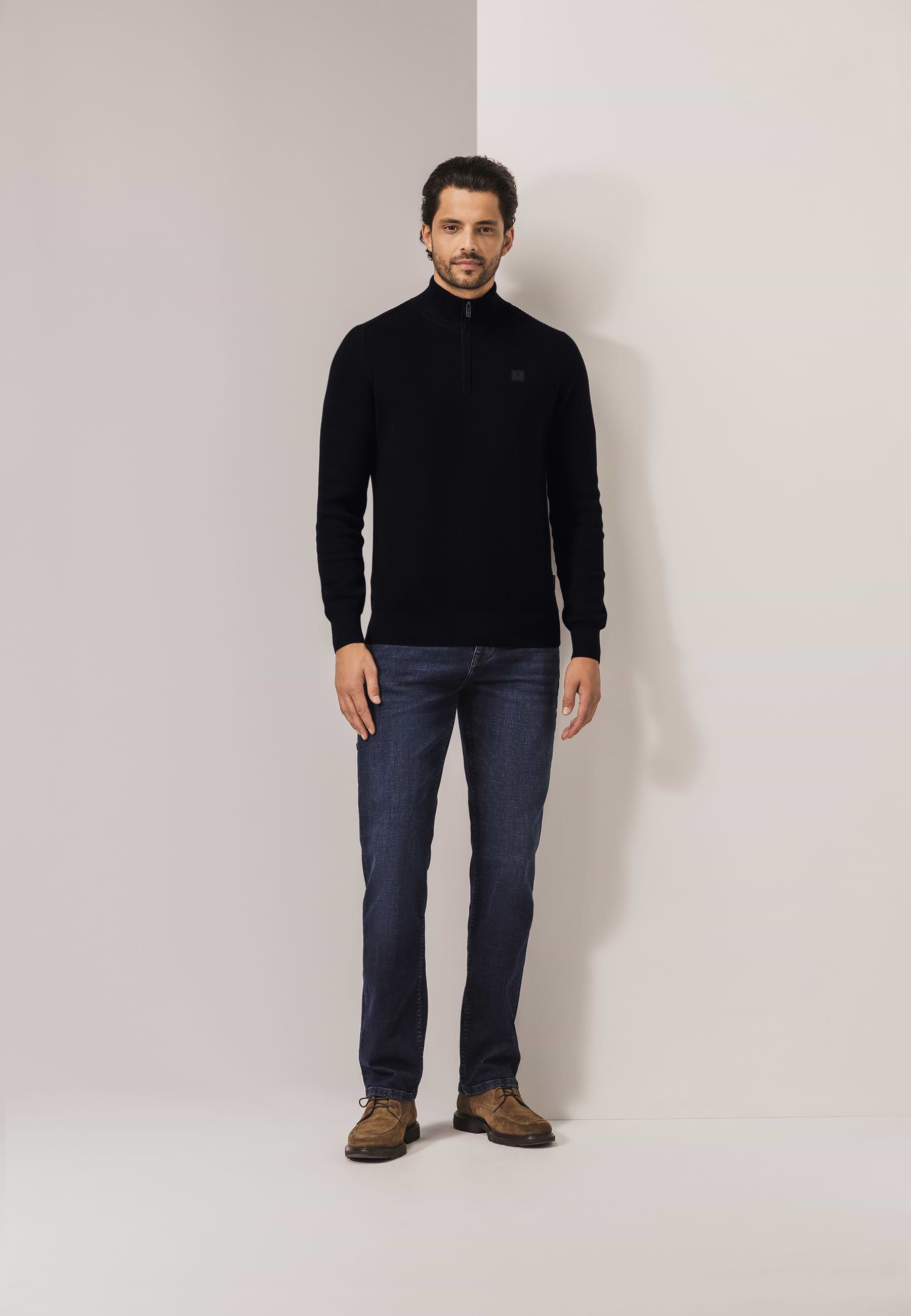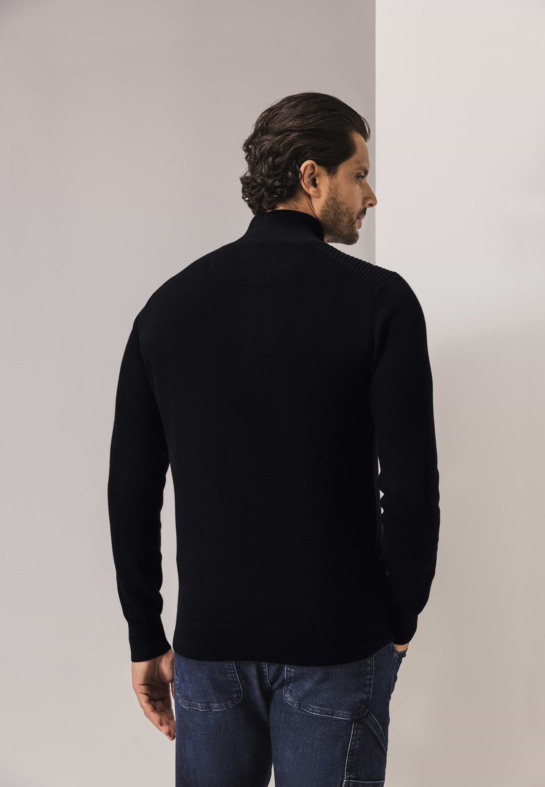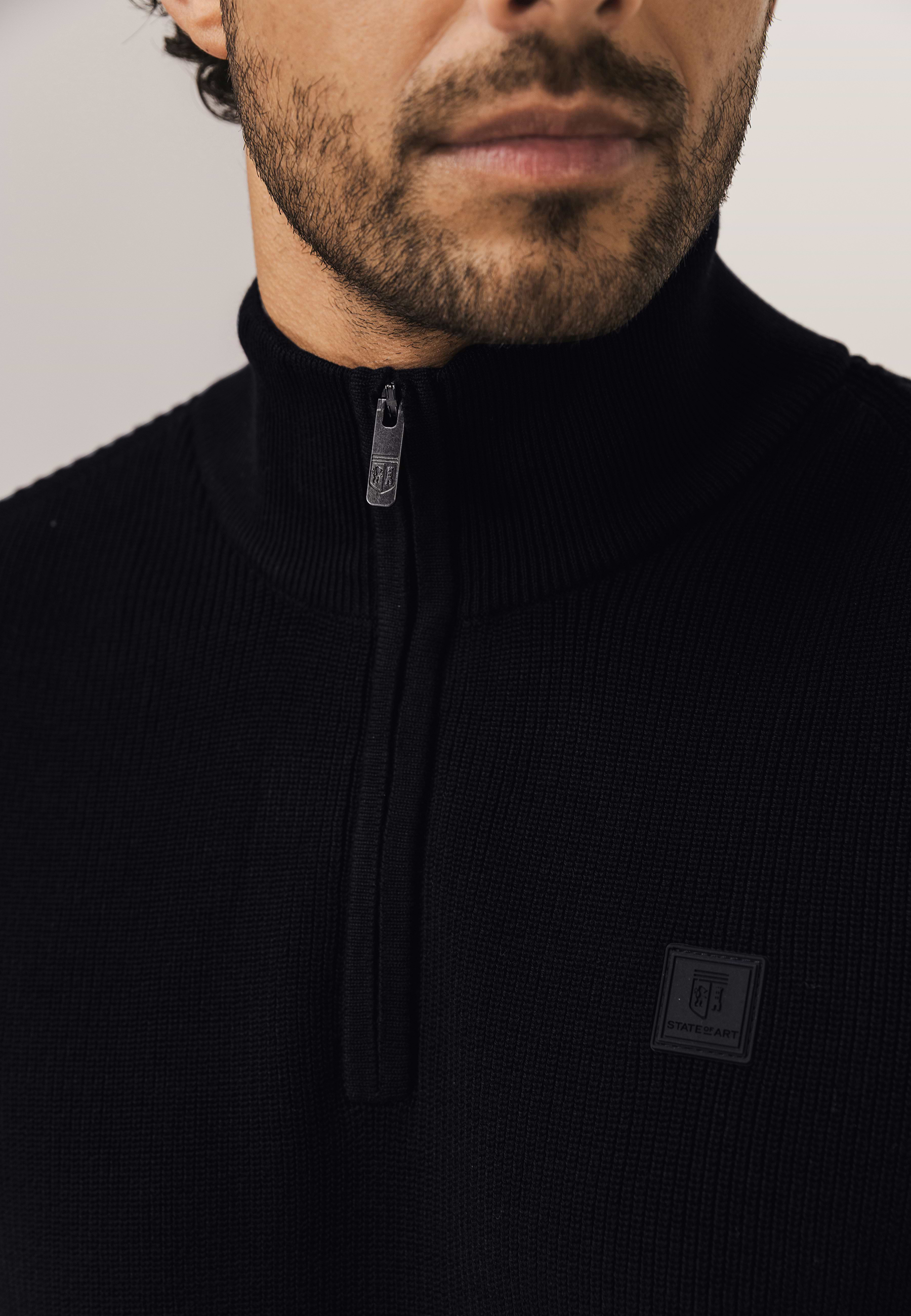 Deze trui is uitgevoerd in katoen van luxueuze kwaliteit en voorzien van een regular fit en een structuurpatroon dat zorgt voor subtiele diepte. De halve rits en opstaande kraag bieden praktische warmte, terwijl de schouderdetails en de rubberen badge op de borst een modern accent geven. De effen kleur maakt het een veelzijdig item binnen je garderobe.