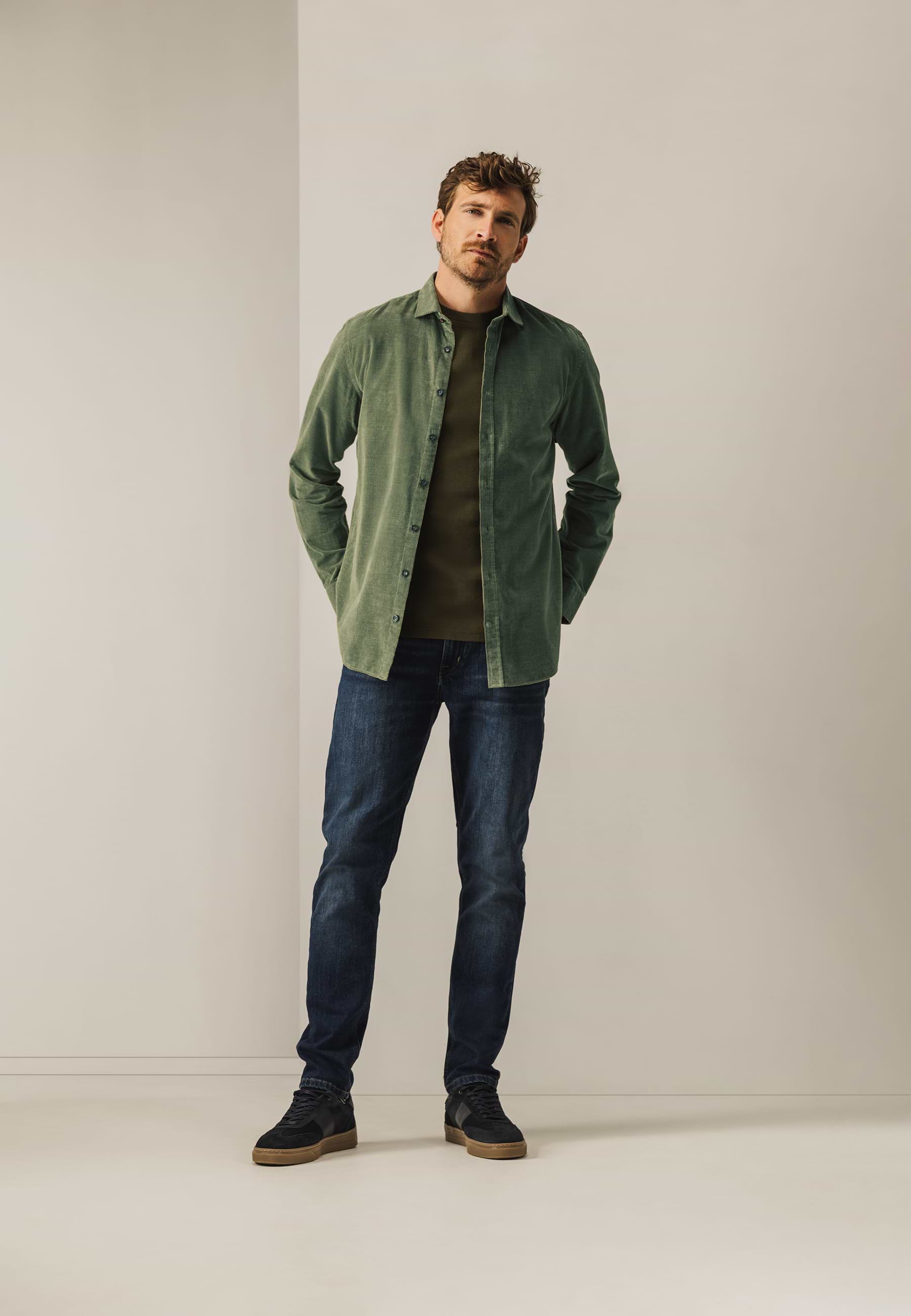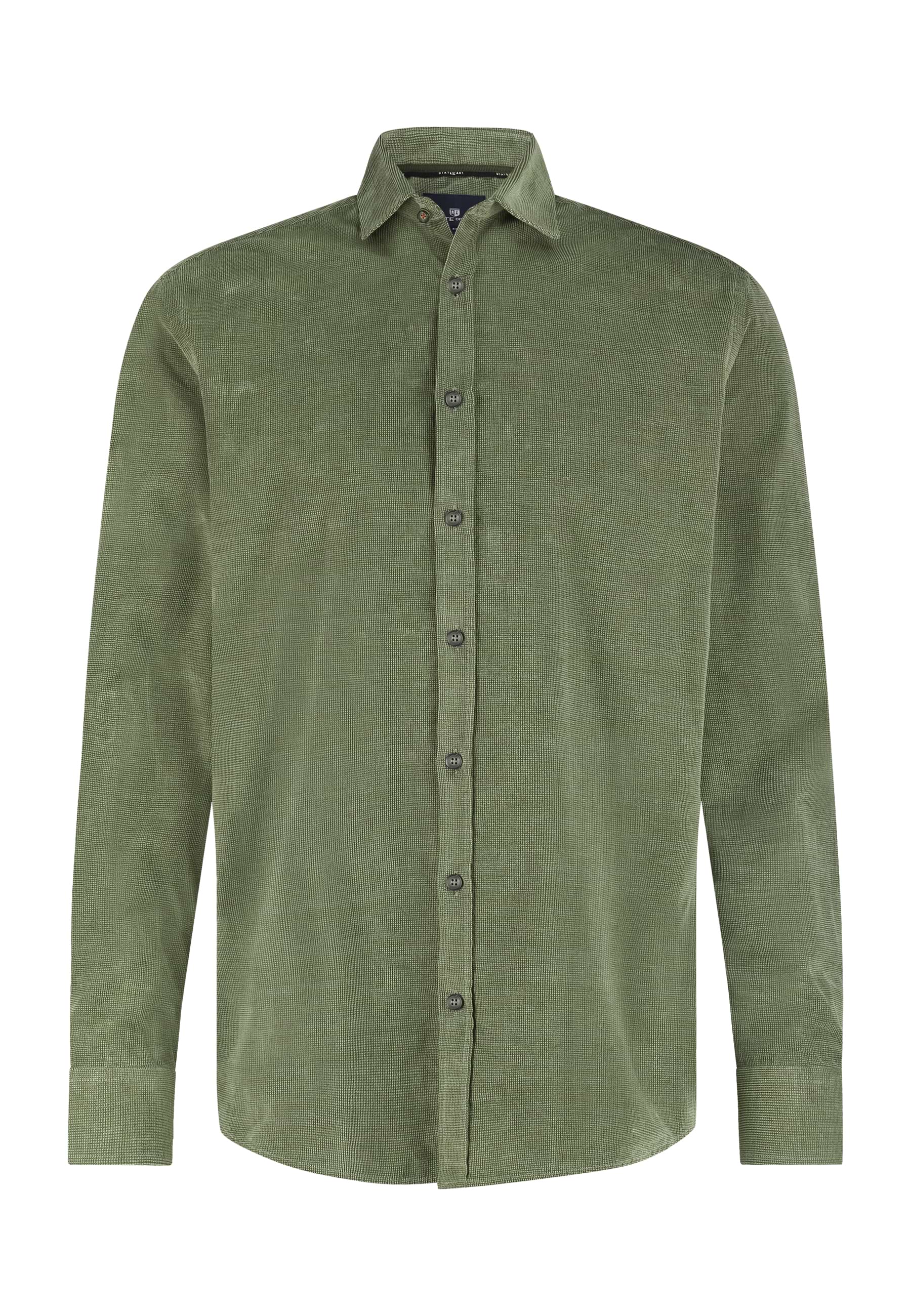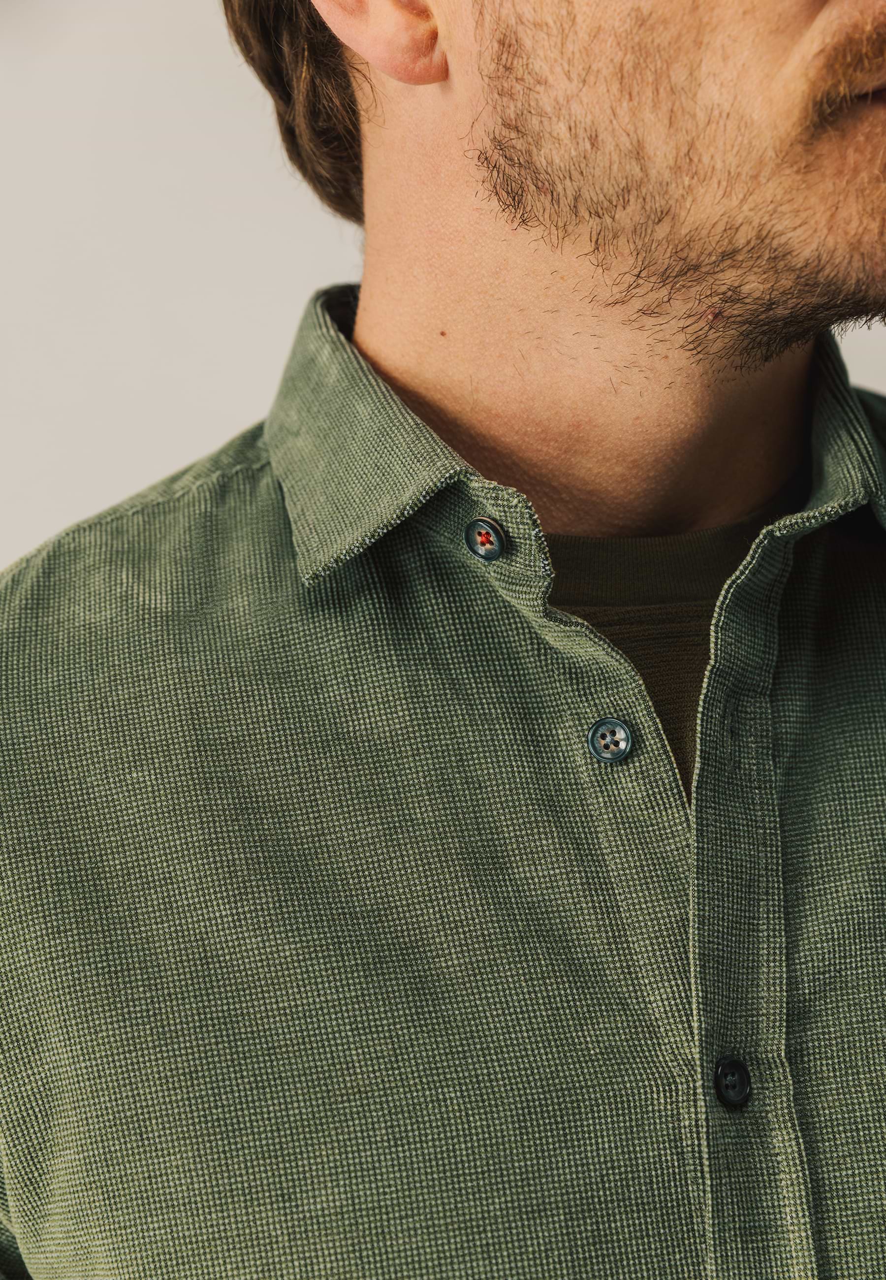 Dit regular fit overhemd van luxueus katoen heeft een veloursstructuur, wat zorgt voor een zachte, fluwelige uitstraling. Door het ontbreken van een button-downkraag en borstzak oogt het overhemd extra elegant en tijdloos, ideaal voor een verfijnde, casual look.