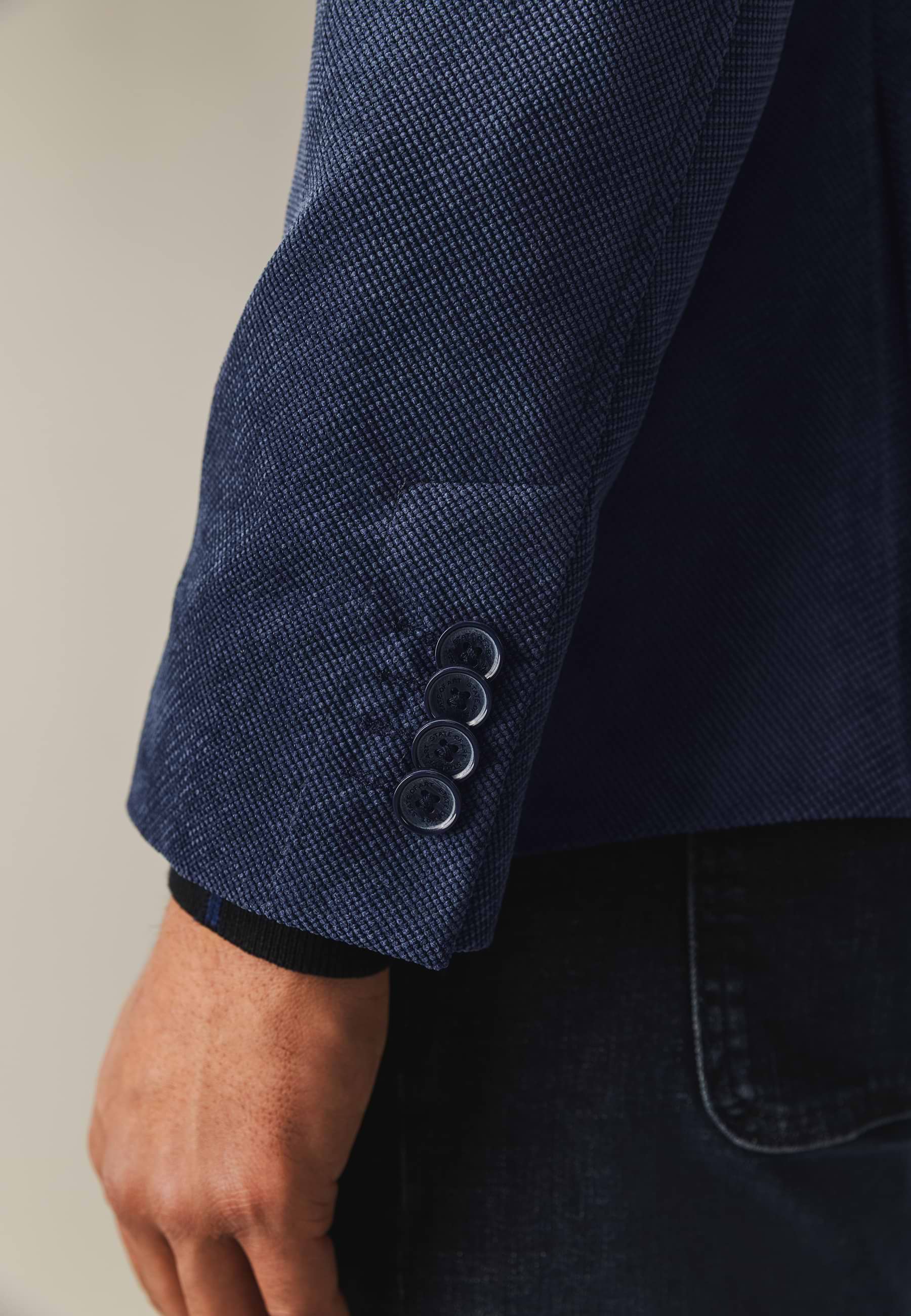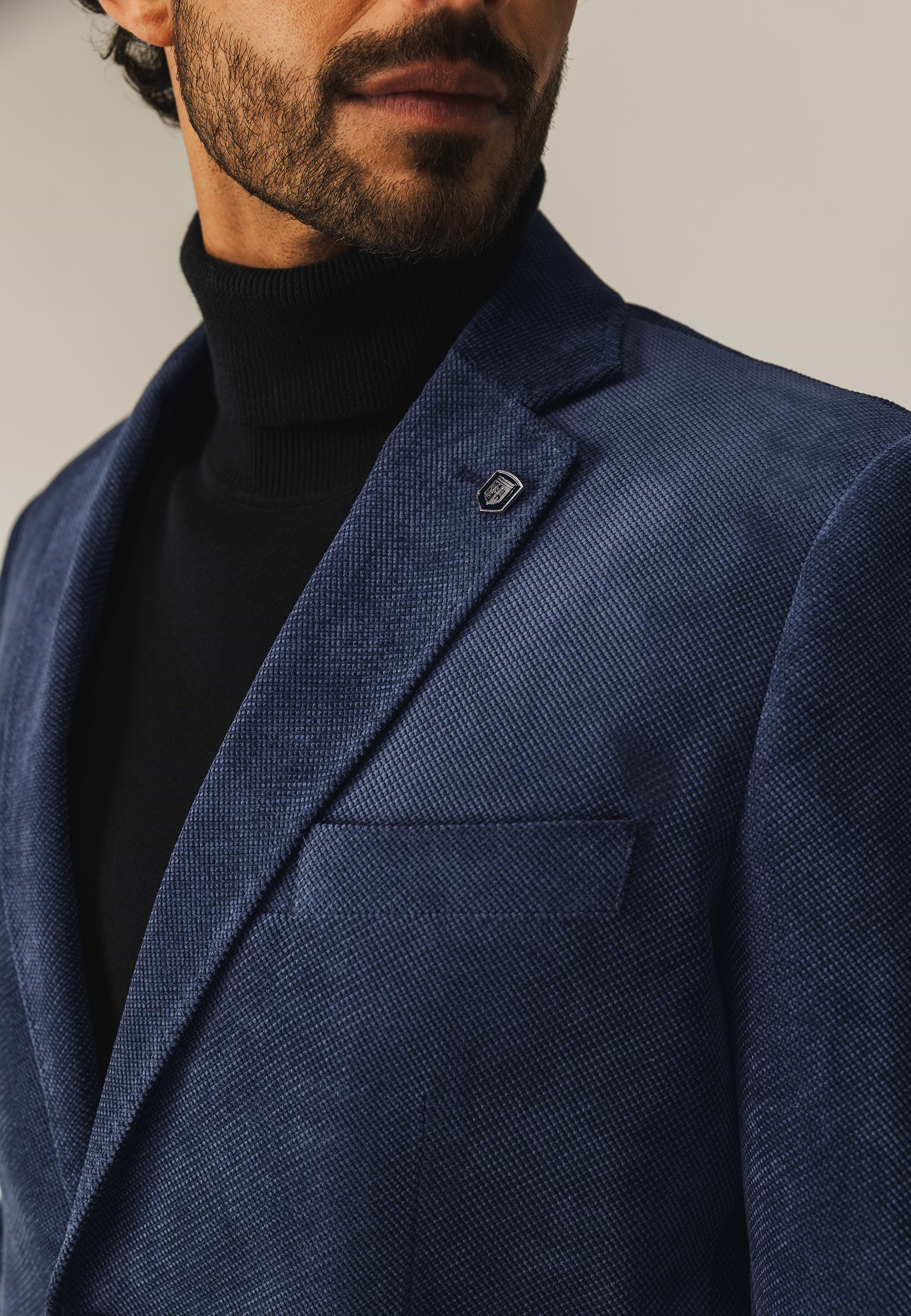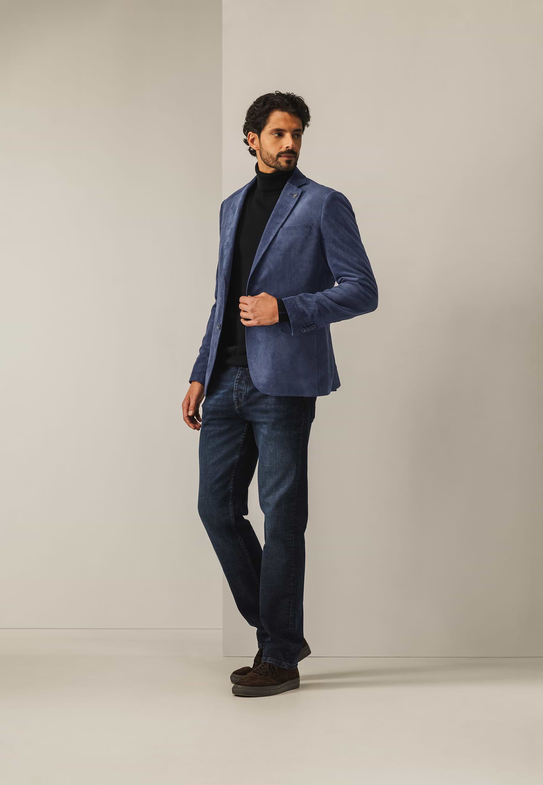 Deze regular fit blazer met klassieke reverskraag en pin is uitgevoerd in zachte babycord: een fijne variant van corduroy met smalle ribbels, een soepele valling en subtiele structuur. De blazer is volledig gevoerd en sluit met twee knopen, terwijl klepzakken, binnenzakken en loopsplitten achter zorgen voor een verzorgde uitstraling en optimaal draagcomfort.