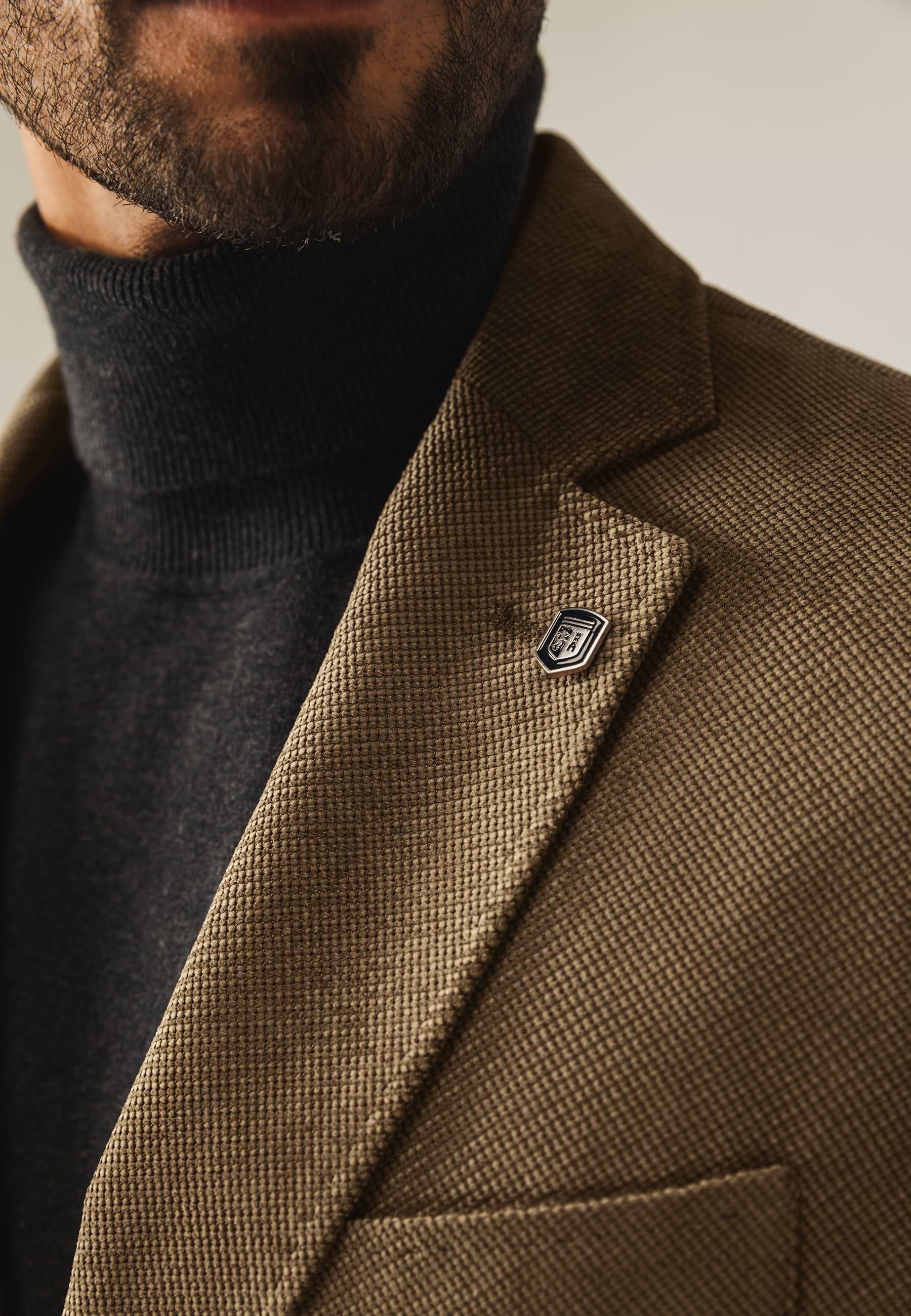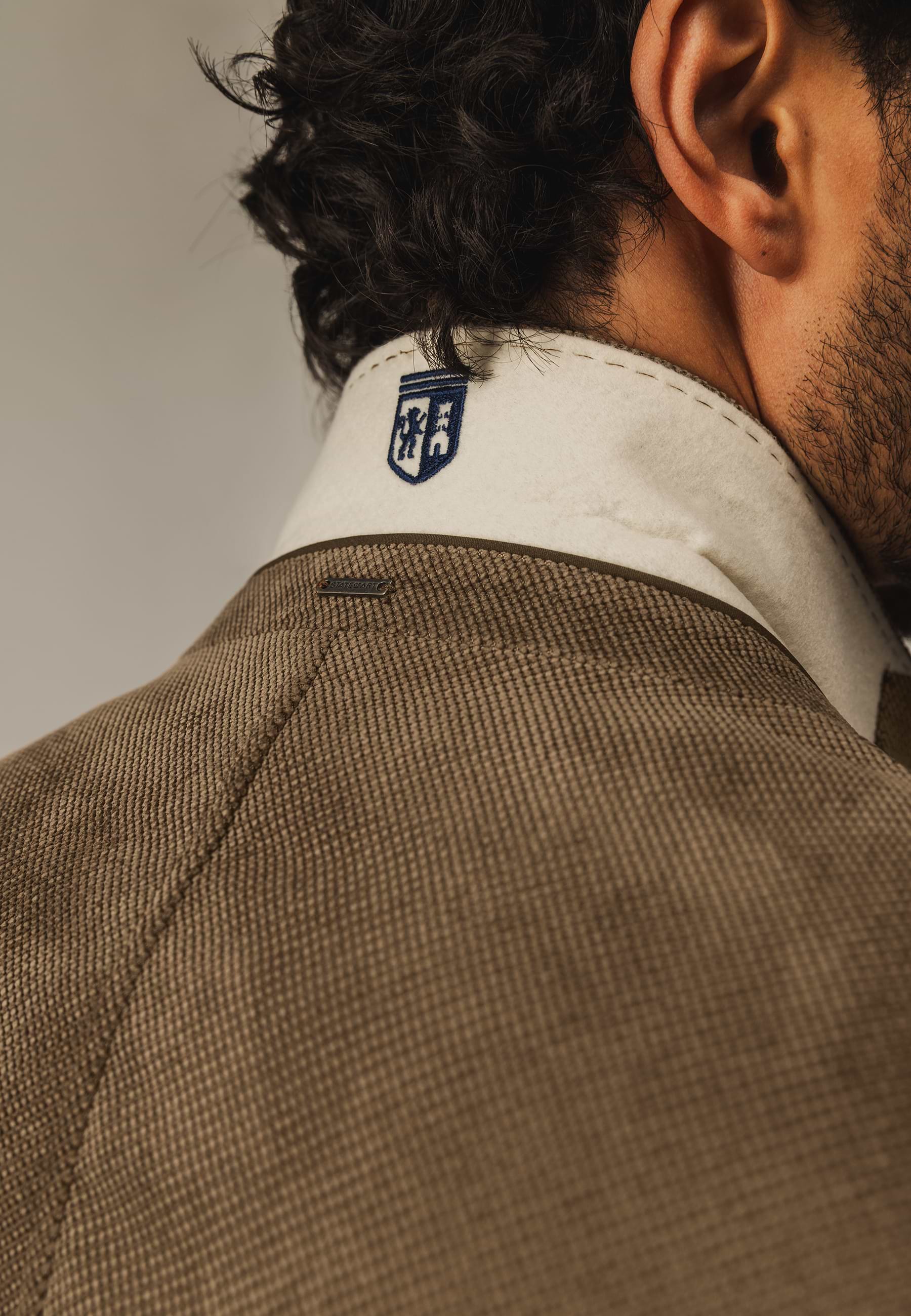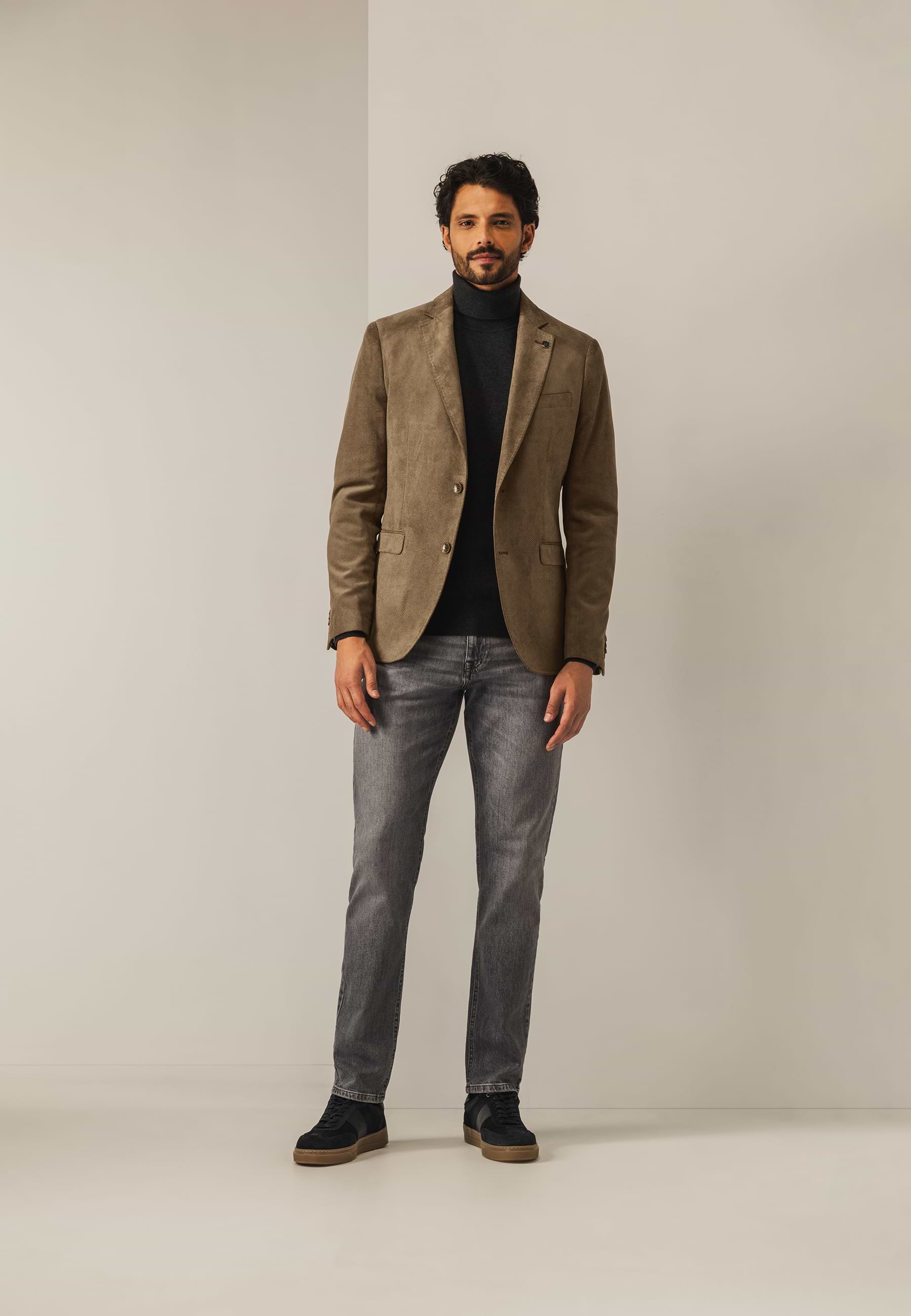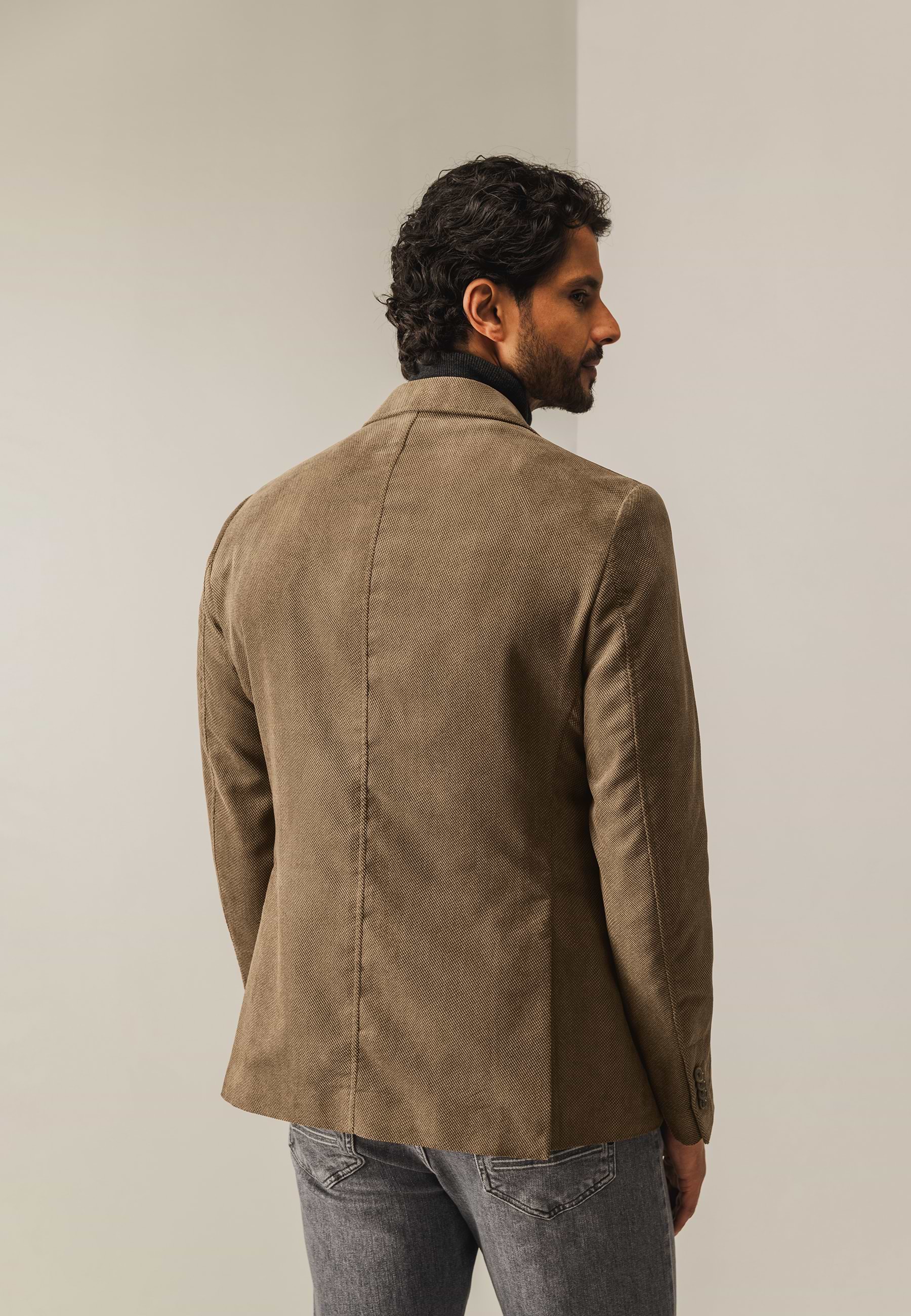 Deze regular fit blazer met klassieke reverskraag en pin is uitgevoerd in zachte babycord: een fijne variant van corduroy met smalle ribbels, een soepele valling en subtiele structuur. De blazer is volledig gevoerd en sluit met twee knopen, terwijl klepzakken, binnenzakken en loopsplitten achter zorgen voor een verzorgde uitstraling en optimaal draagcomfort.